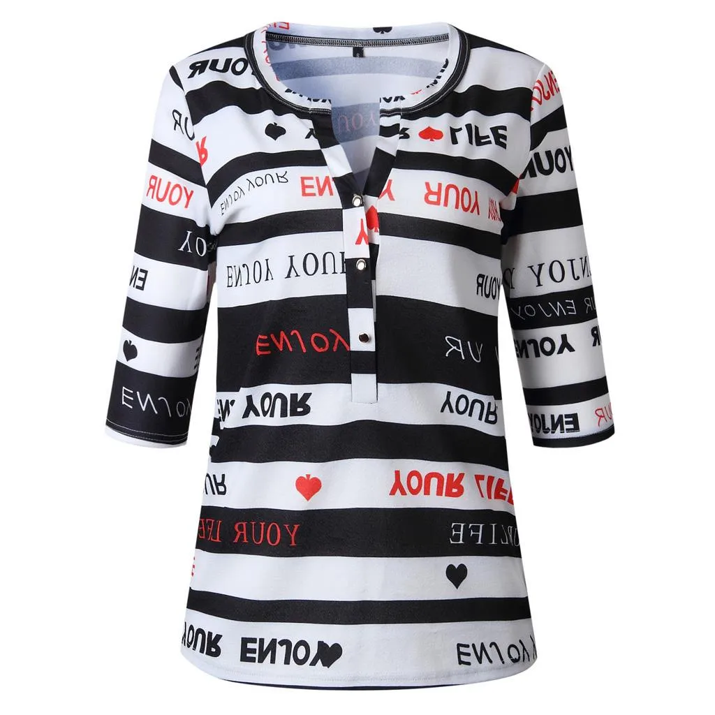 Купить Женская блузка с буквенным принтом сердца Повседневная блуза v-образным вырезом