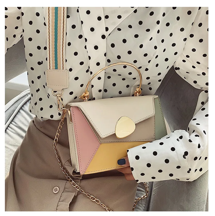 Fashion Shoulder Bags Strap Top-handle Wild Spell Color Female Totes Chains Casual Crossbody Women's Handbags Ladies Flap Багаж и - купить