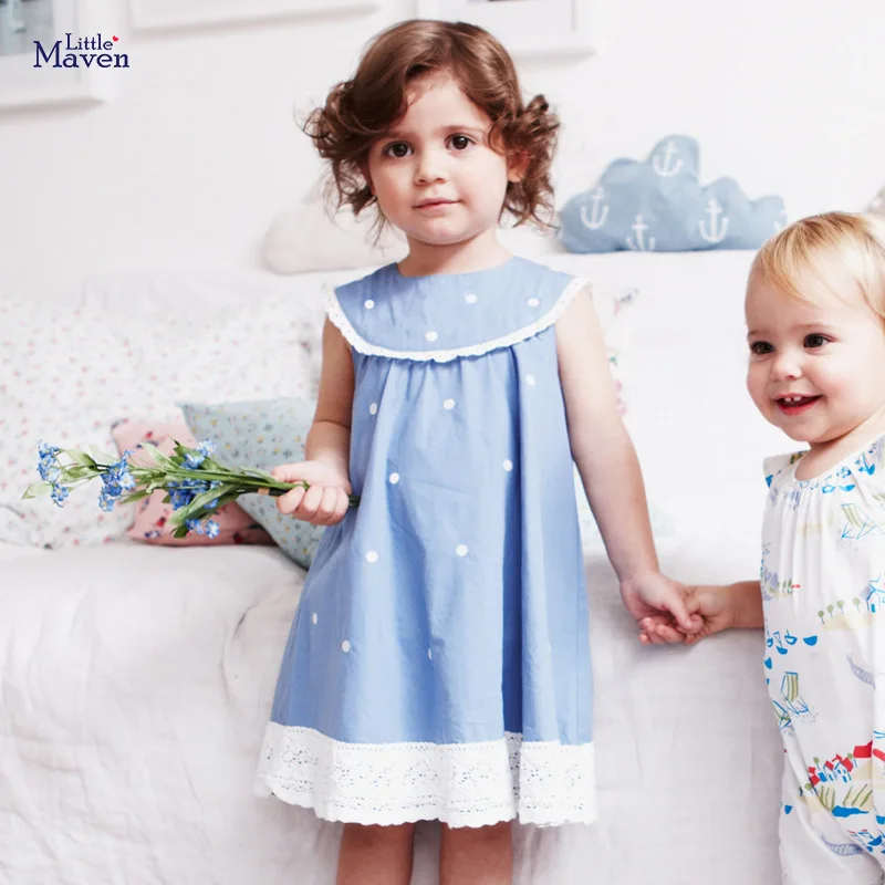 Детское Хлопковое платье в горошек без рукавов с круглым вырезом Детская одежда - купить