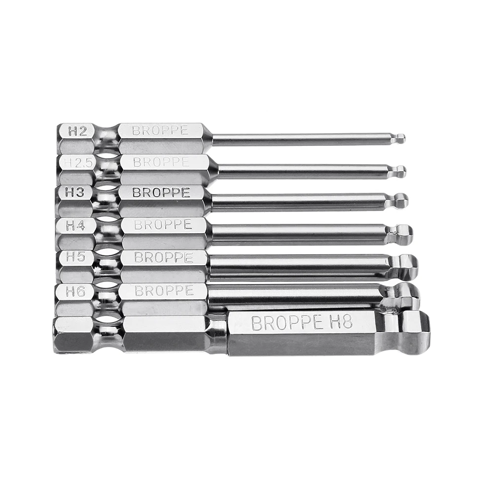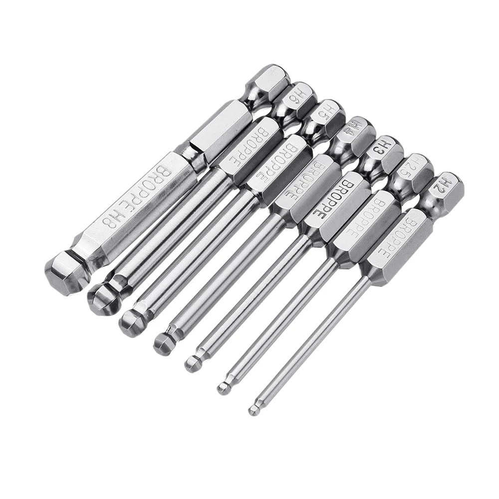 Broppe 7 шт. 2/2.5/3/4/5/6/8 мм Магнитная шариковая отвертка с шестигранным хвостовиком 1/4 - купить