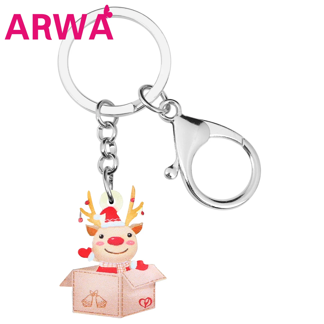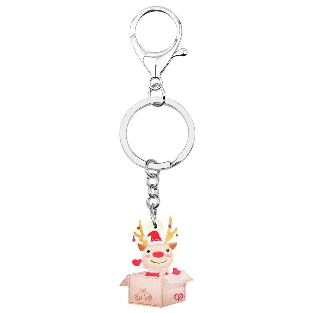 Отзывы о ARWA Acrylic Christmas Hat Elk Deer Gift Box Keychain Animal Key Ring Chain For Women Girl Bag Car Purse Wallet Decoration Украшения и