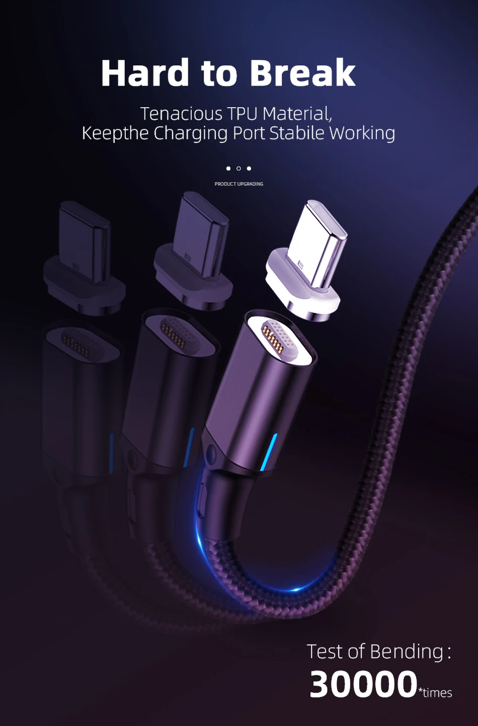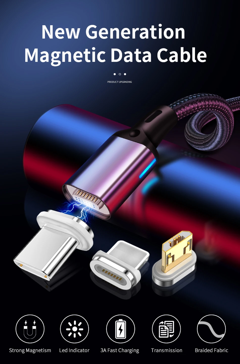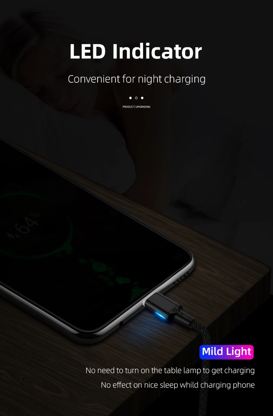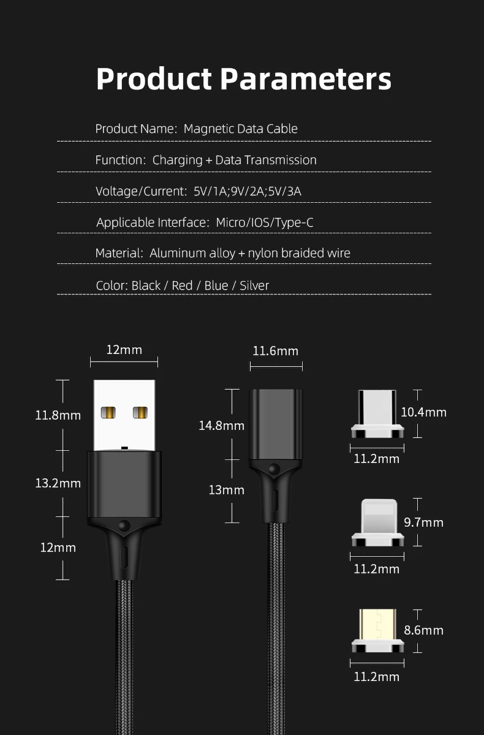 Функция: зарядка и передача данных Megnet, индикаторная лампа светильник Ток: 3A, тип-c 5A (макс.) Цвет: черный/красный/синий/серебристый Длина: 1 м 2 м Продукт Особенности: -Поддержка быстрой зарядки: максимальная поддержка тока 5.0A, поддержка быстрой зарядки. -Светодиодный индикатор: легко найти кабель ночью, светодиодный индикатор. Мягкое освещение не ослепит вас во время сна. -Ультра прочный: металлический порт + нейлоновая оплетка провода, делает продукт прочным и сопротивляется kinkd и запутывания. -Легко заряжать: штекер отделен от кабеля. Штекер может оставаться на телефоне, только 1 секунду подключен для зарядки.