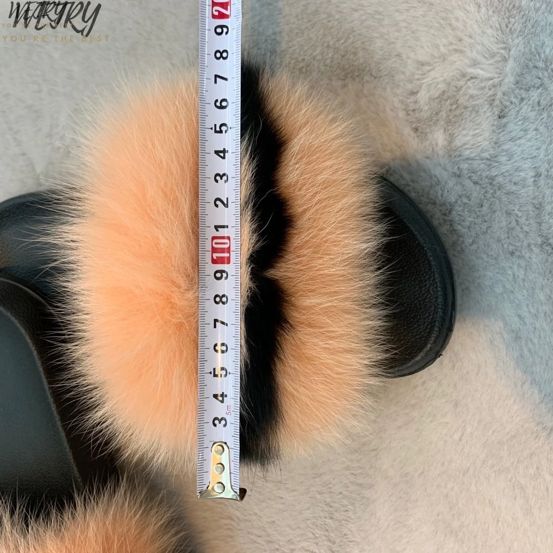 IN 2020 Brand Luxury Fur Slippers Women Real Fox Slides Home Furry Flat Sandals Female Cute Fluffy House Shoes Woman Обувь - купить