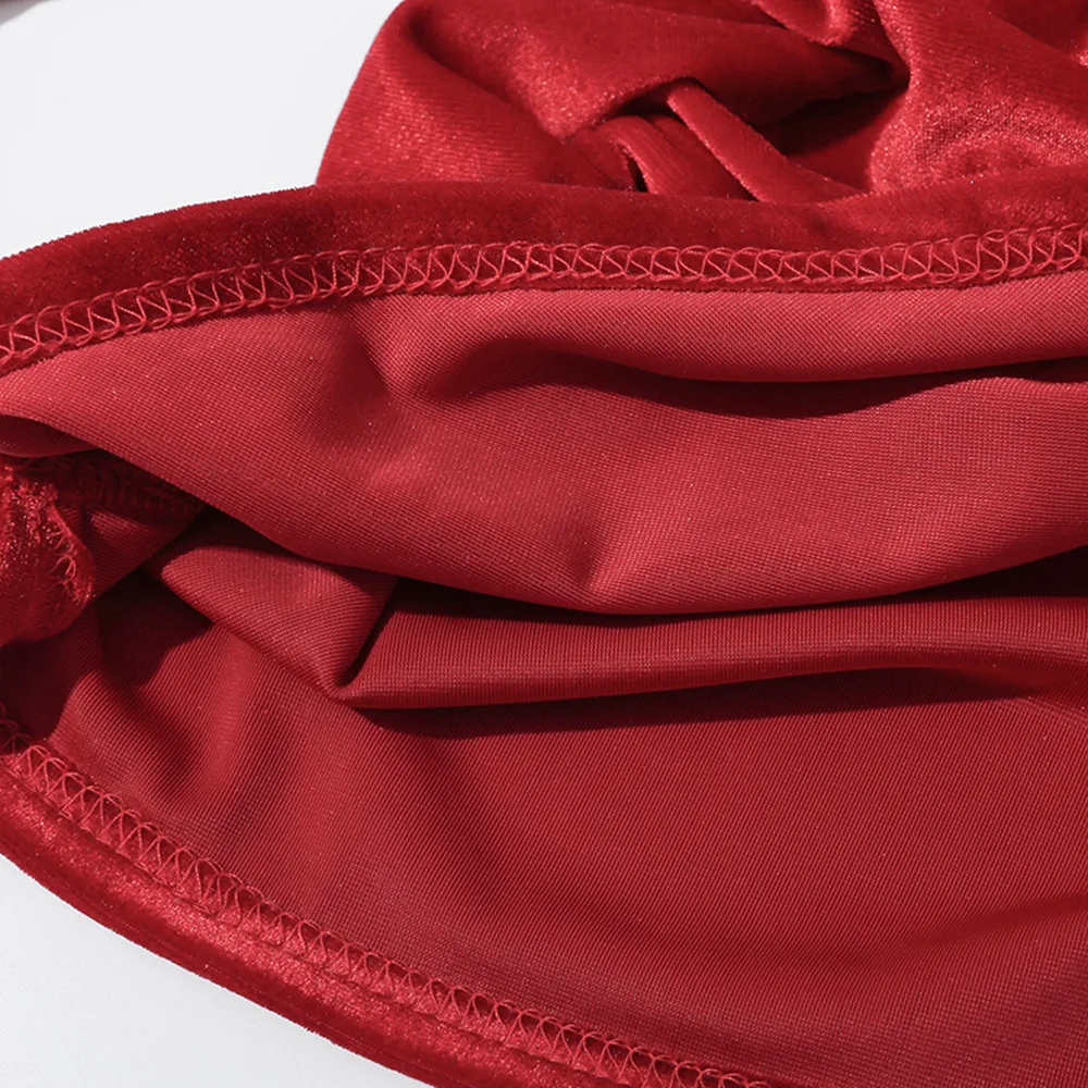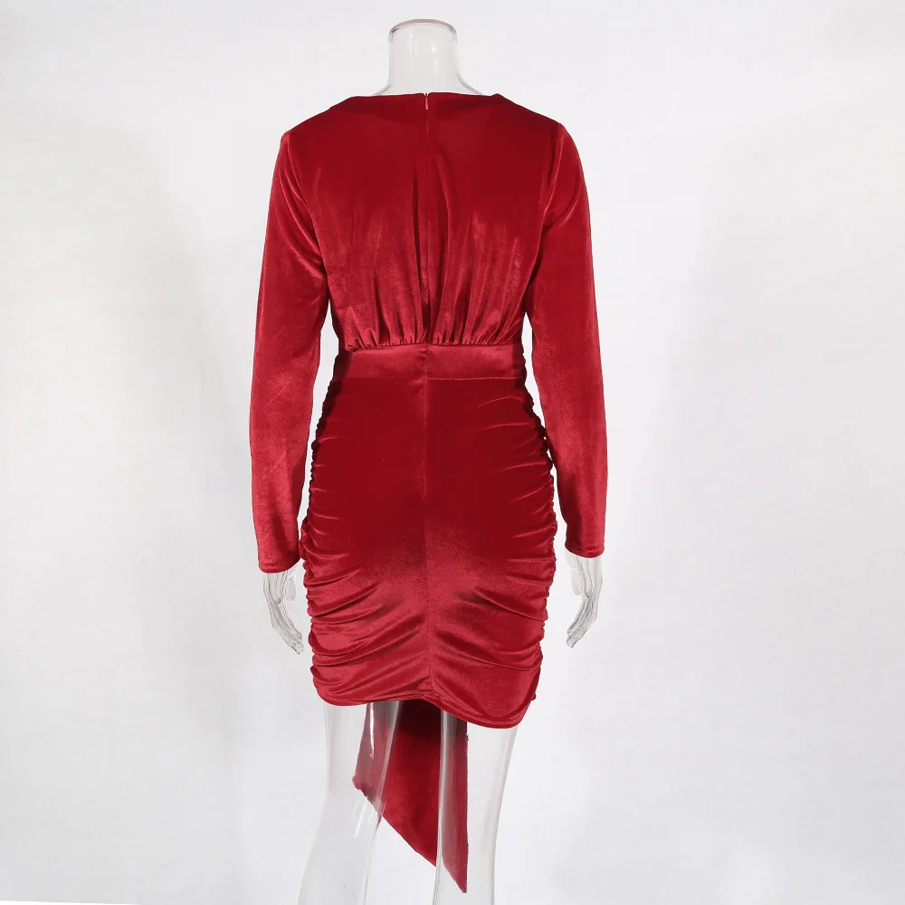 DFLlifes Velvet Solid V-Neck Sexy Club Women Dresses Long Sleeve Slim Draped Red Sparkle Dress Black Mini Vestidos 2020 Hot Женская - купить