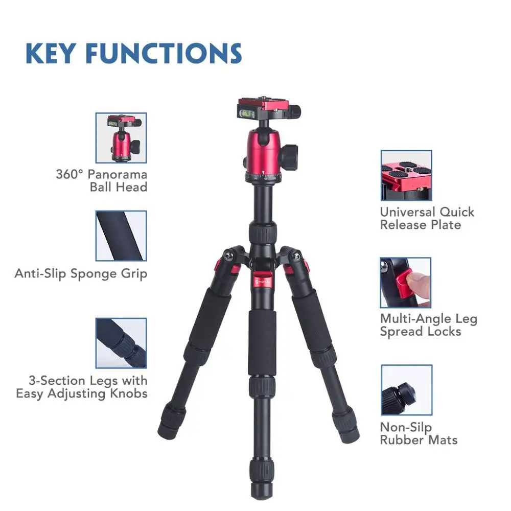 【Прочная конструкция 】 moman mini DSLR штатив изготовлен из алюминия с ЧПУ, достаточно прочный, выдерживая максимум. Нагрузка составляет 22 фунта стабильно. Портативный для съемки на открытом воздухе или путешествий благодаря складной Длина 8,3 дюйма, а вес 2,1 Фунтов. 【Perfect макро photography】wide высота-диапазон регулировки от 20,5 в сохраняет тепло даже при очень низкой 5,9 в Гибкий штатив-Трипод для камеры для фотосъемки может даже обратный центральная колонка для того, чтобы сделать самый нижний уровень съемки. f 【Легко установить-up】регулируемые ручки разработаны в 3 секции колонны ноги, полный штатив поставляется вместе с мульти-угол ноги распространения замки. Отрегулируйте рабочую высоту всего за несколько секунд! 【Панорамная головка с ЧПУ может вращаться на 360 ° и плотно фиксироваться, легко получить идеальный снимок под идеальным углом. Съемная БЫСТРОРАЗЪЕМНАЯ пластина со стандартным винтовым креплением 1/4-20, подходит для почти камер и видеокамер. 【С сумкой для переноски 】предлагается сумка для переноски на открытом воздухе или для путешествий. 1. Авиационный алюминиевый сплав Штатив Manbily DT-02 и шаровая Головка изготовлены из алюминиевого сплава с ЧПУ. По сравнению с обычными станками, станки с ЧПУ имеют более высокую обработку Точность и более стабильное качество обработки. С твердым анодным окислительным покрытием На поверхности, бросок, антикоррозийный, не отшелушивает картину. 2. Гораздо легче носить с собой Мини-размер: Длина 8,3 дюйма, а вес 2,1 Фунтов. 3. 3 регулируемые ручки Портативный штатив-Трипод может диапазон регулировки высоты от 20,5 в до 5,9 в по гибкие ручки, Фиксирование различных потребностей съемки. Технические характеристики: Материал: авиационный алюминиевый сплав с ЧПУ Головка штатива: B-10 360 ° панорамная шаровая Головка, 2 уровня пузырьков Кол-во секций: 3 ноги Диаметр: Φ21Φ19,Φ16mm Складные минимальная длина: 8,3 в такой стране, как. / 21 см Минимальная высота: 5,9 в такой стране, как. / 15 см Максимальная высота: 20,5 в такой стране, как. / 52 см Вес алюминия: 950 г Вес углеродного волокна 860 г Максимальная нагрузка: 10 кг Посылка список: Штатив (1 шт.) 1 х шаровая Головка Чехол для переноски (1 шт.); 1 x ключ, дюймовый стандарт