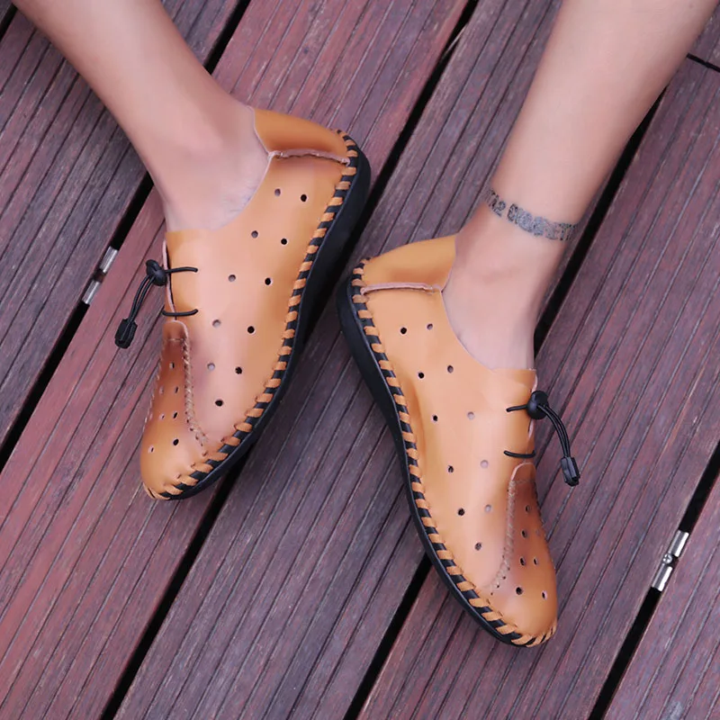 Сандалии мужские из спилка легкие босоножки на шнуровке дышащие удобные - купить