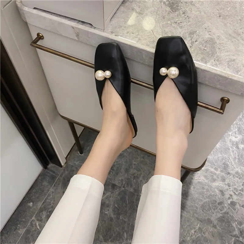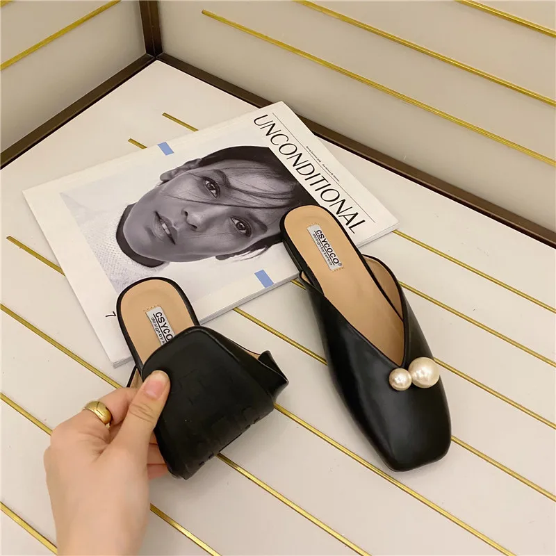 Купить 2020 дизайнерские женские шлепанцы Черная Повседневная обувь с квадратным носком