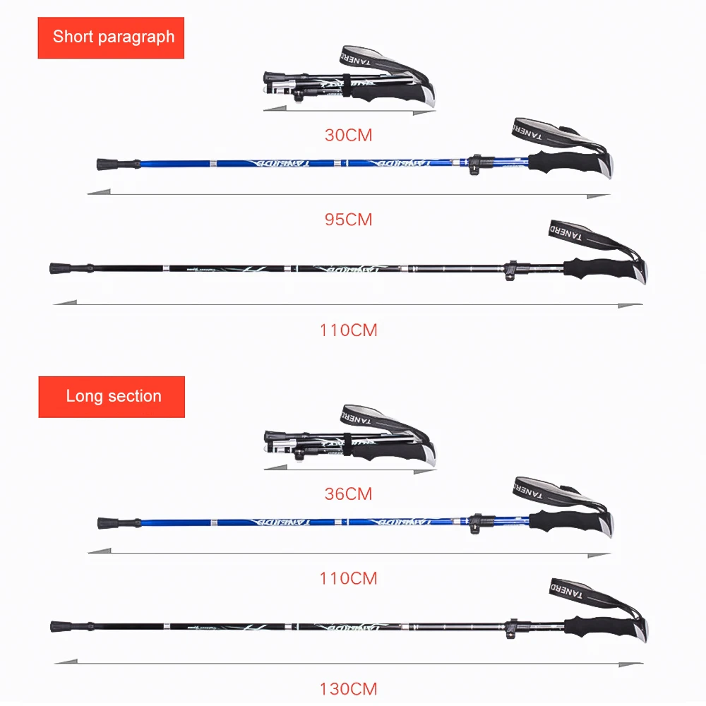 Особенности:5-секционный регулируемый телескопический шест.Регулируемая длина от около 36 см до 130 см, 30 см до 110 см.Противоскользящая ручка, очень удобно держать.Противоударный пружинный механизм уменьшает нагрузку на руки и запястье.Прочный и регулируемый ремешок обеспечивает более безопасное и надежное сцепление.Наконечник из вольфрамовой стали со съемным резиновым наконечником, защищает походную палку.Изготовлен из авиационного 6061 алюминиевого сплава, прочный и легкий, удобный для переноски.Необходимый инструмент для активного отдыха, например для пеших прогулок, альпинизма, путешествий и т. д. Описание:Тип: 130 см, 100 смЦветДля заказа цвета: черный/Синий/Красный/Фиолетовый/GЗеленого цвета/светло-голубойВес упаковки:300 г/1 трость