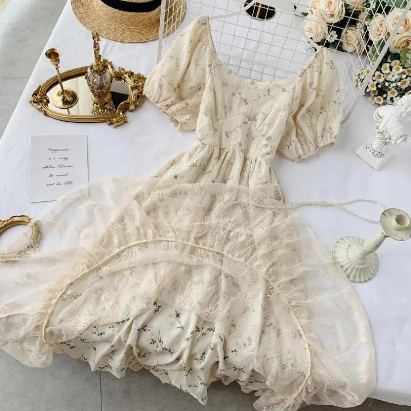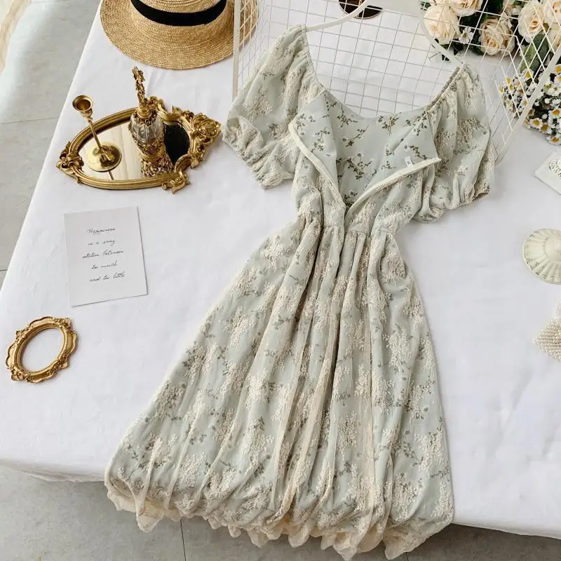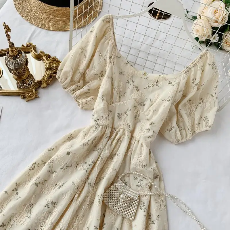 Отзывы о Женское винтажное платье элегантное во французском стиле с коротким рукавом и