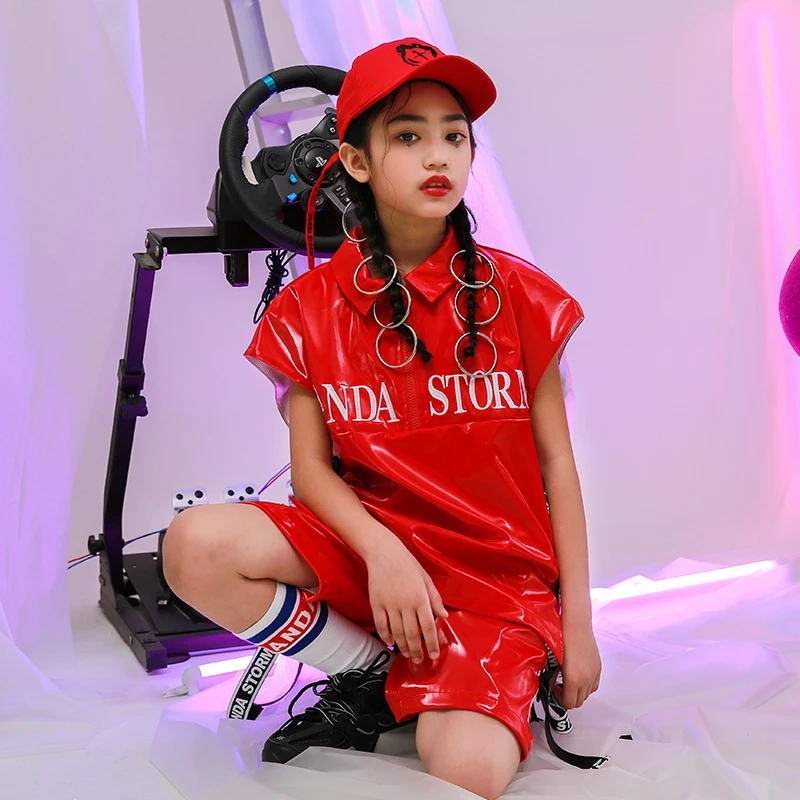 Купить Детские современные костюмы для джазовых танцев красный кожаный жилет костюм