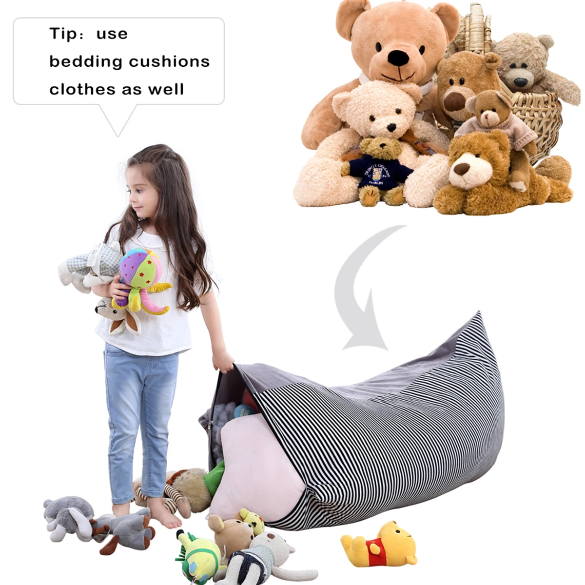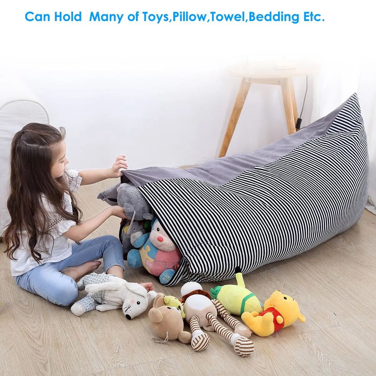 Купить Детский мешок для хранения игрушек из мягкого плюша Kid Baby Storage Bean Bag Soft Pouch Lounge Chair Sofa Extra Large Canvas Stripe on.