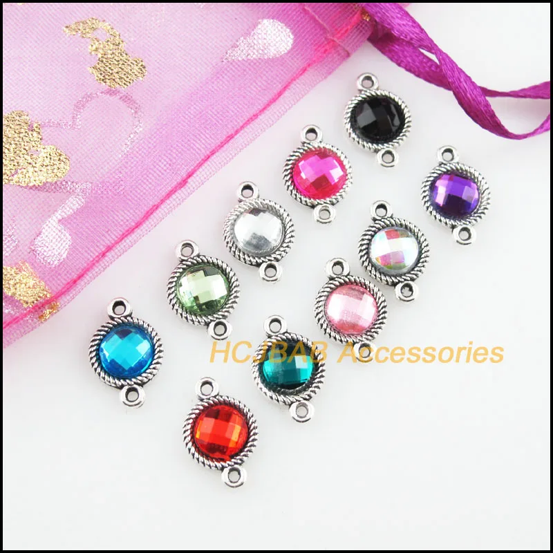 Купить 30 New Round Charms Tibetan Silver Color Acrylic Mixed Connectors 8.5x13mm |