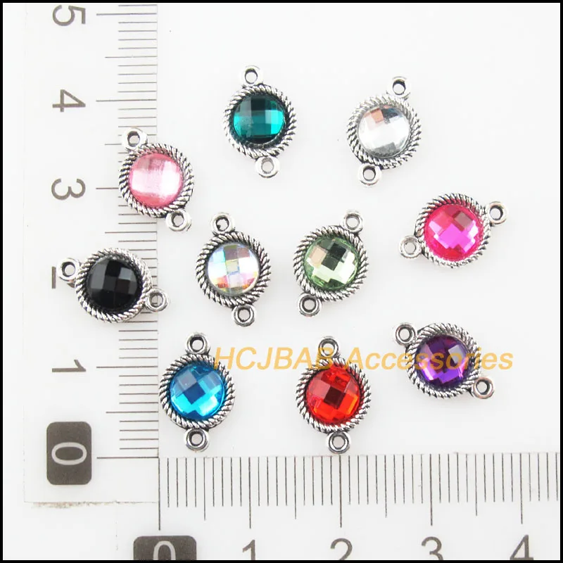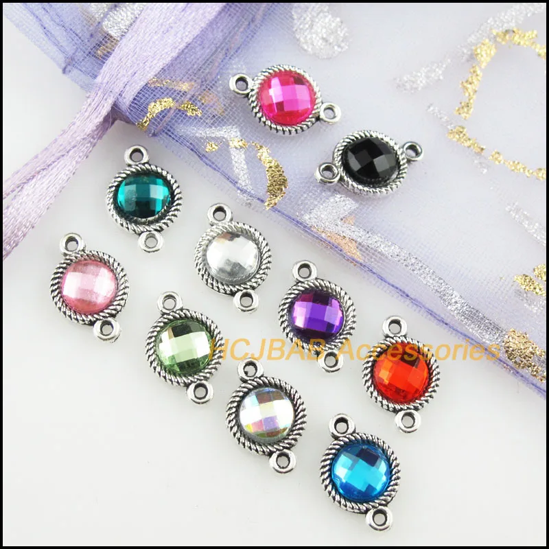 30 New Round Charms Tibetan Silver Color Acrylic Mixed Connectors 8.5x13mm - купить