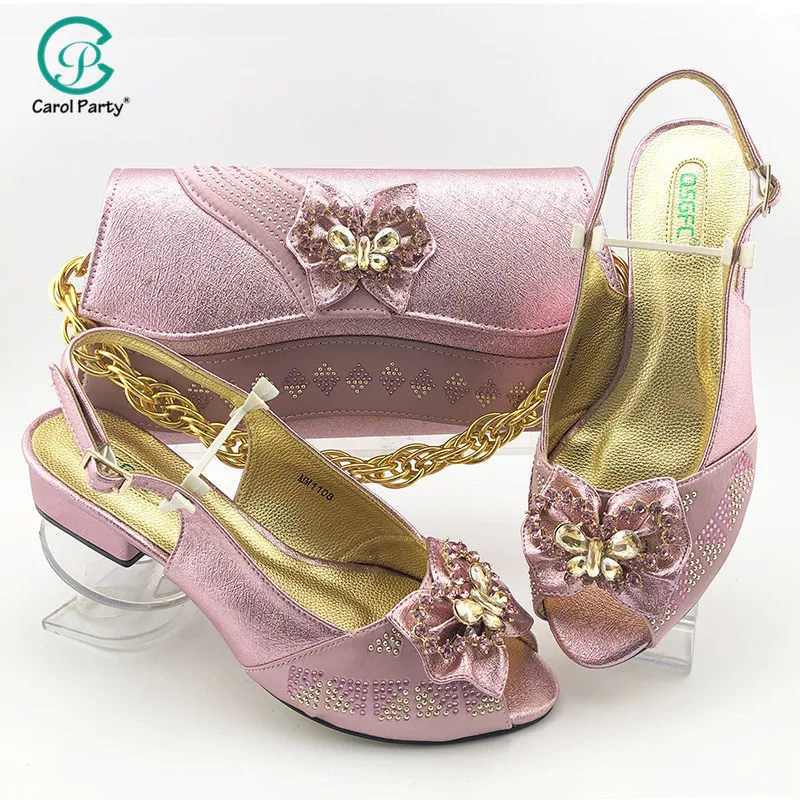 Последний итальянский дизайн 2020 года комплект из обуви и сумки на низком каблуке - купить