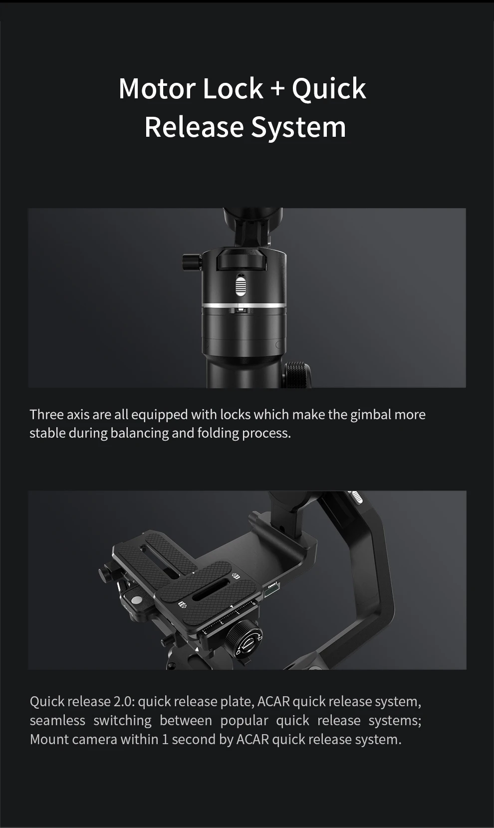 AK2000S ручной трехосевой стабилизатор разработанный для видеографов, на который можно легко установить все популярные беззеркальные и зеркальные камеры на рынке. Филигранный внешний вид, удобство в работе и транспортировке, а также обеспечение лучшего соединения с камерами. AK2000S стремится быть лучшим стабилизатором созданным когда-либо и приносить больше возможностей для создания изображений и видео.