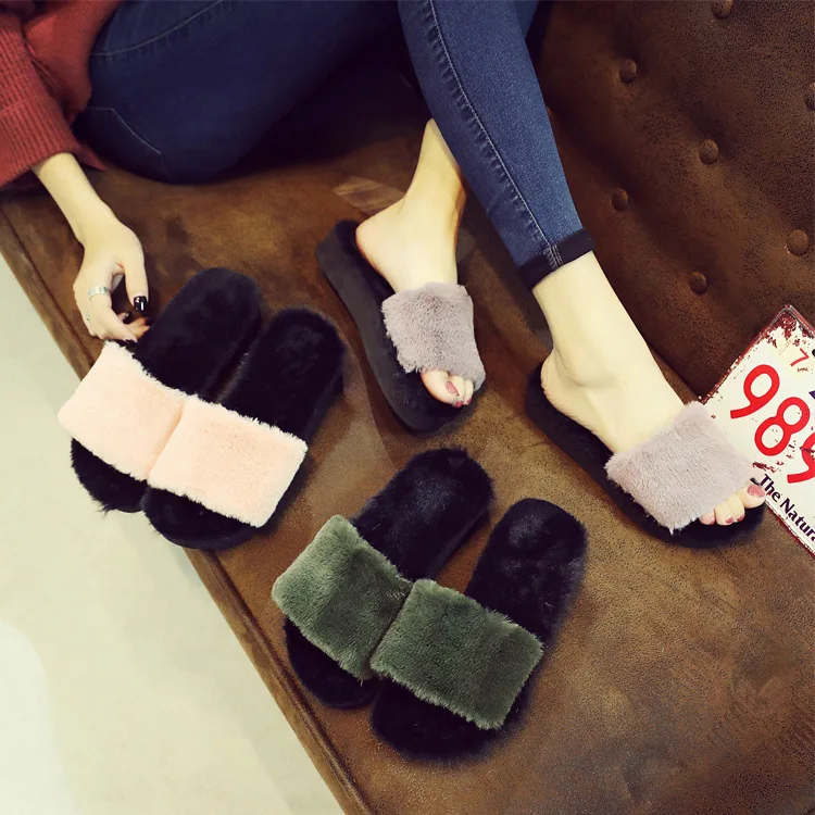 Отзывы о Maggie's Walker Fuzzy Slippers Chinelos Sliders Shoes Open-toed New Women Spring Plush Fluffy Slipper Chinese Обувь