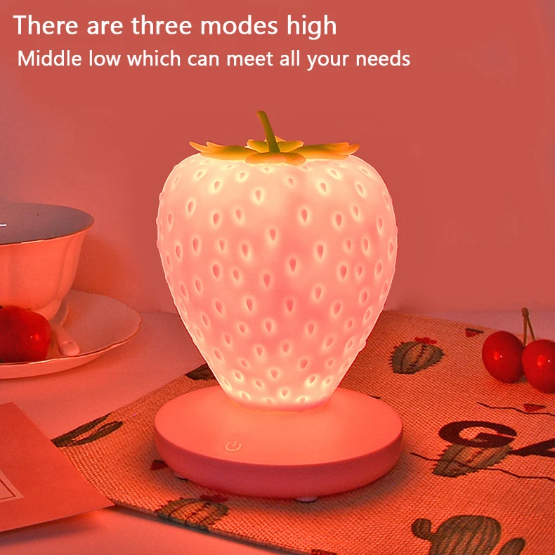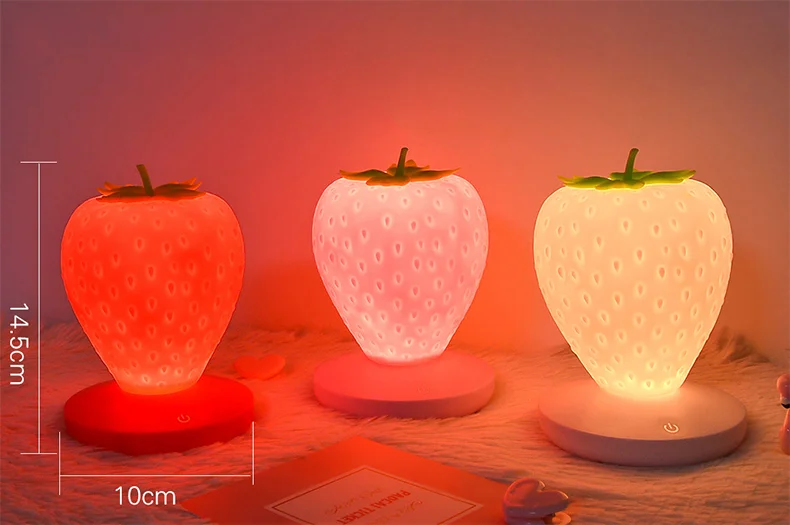Отзывы о Ночная лампа USB в виде клубники с регулируемой яркостью и модульными сенсорными огнями для украшения спальни гостиной