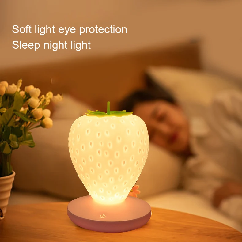 Ночная лампа USB в виде клубники с регулируемой яркостью и модульными сенсорными огнями для украшения спальни гостиной - купить