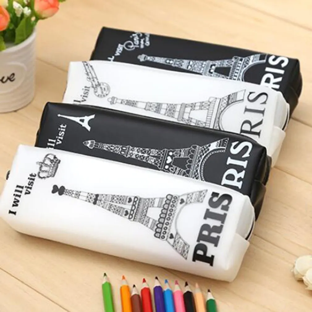 Отзывы о Супер большой милый чехол для карандашей с Эйфелевой башней силикагель школьные