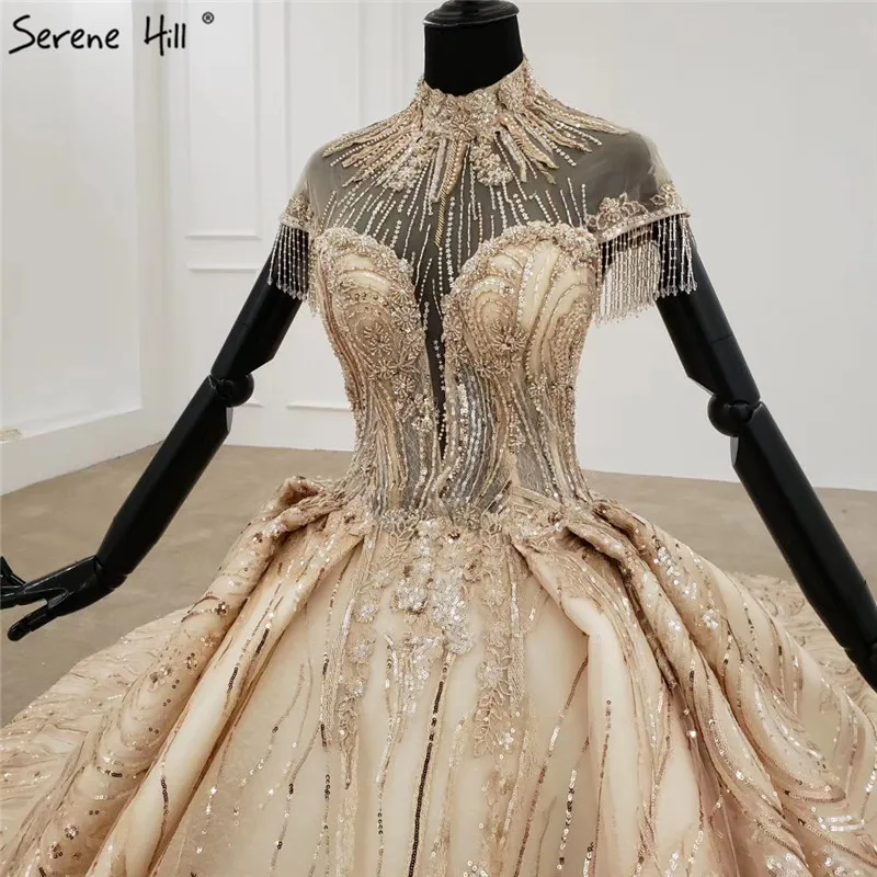 Отзывы о Серен Хилл Дубай роскошное Золотое свадебное платье с высоким воротом 2020 блесток