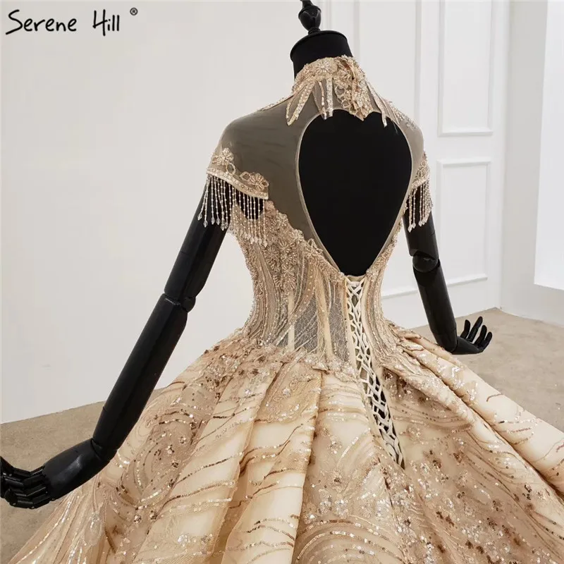Серен Хилл Дубай роскошное Золотое свадебное платье с высоким воротом 2020 блесток - купить