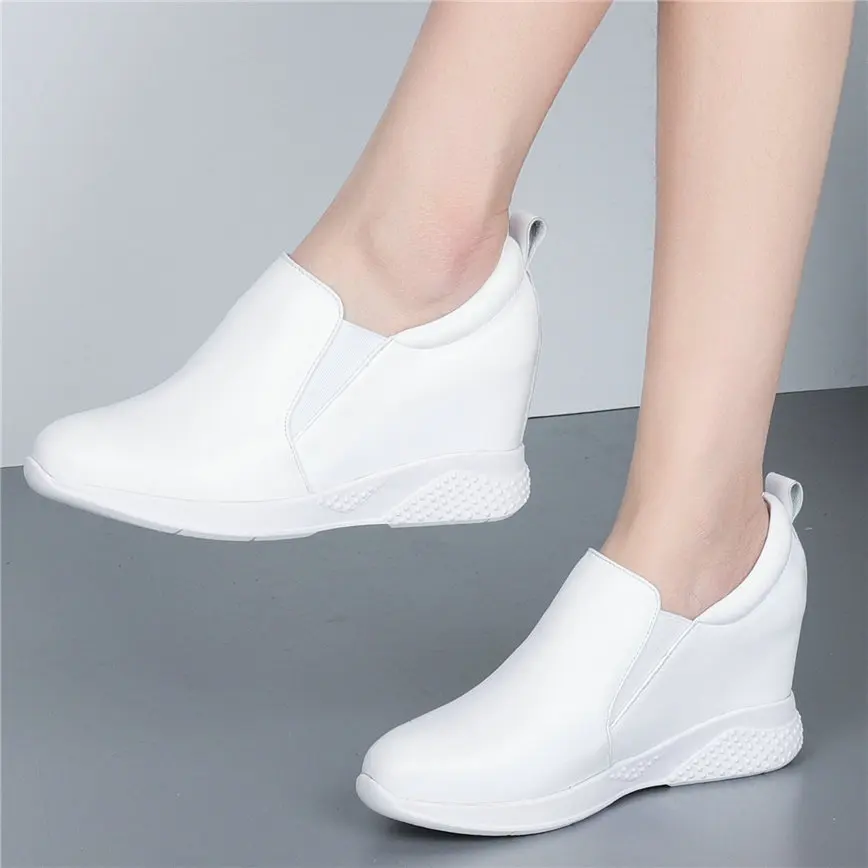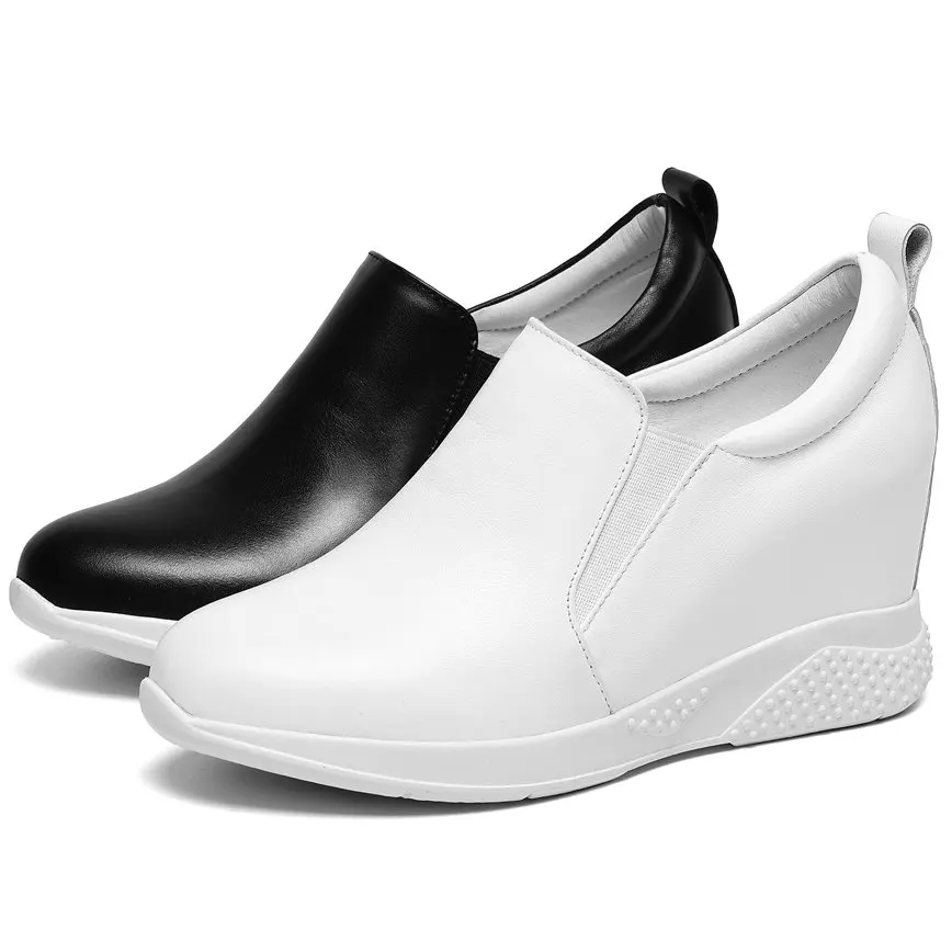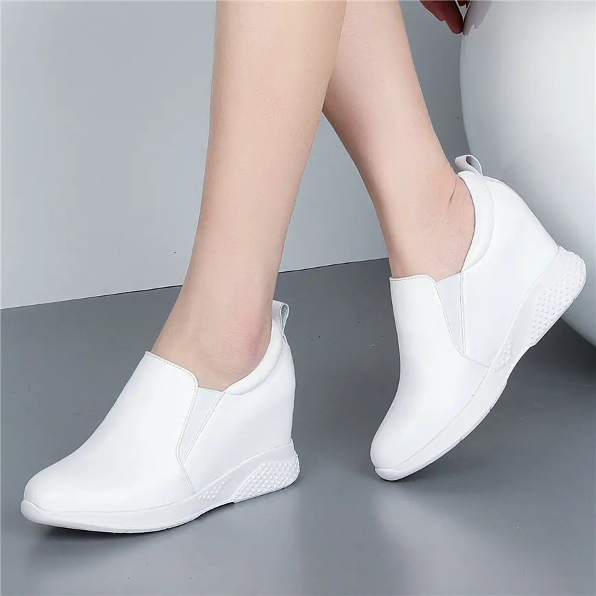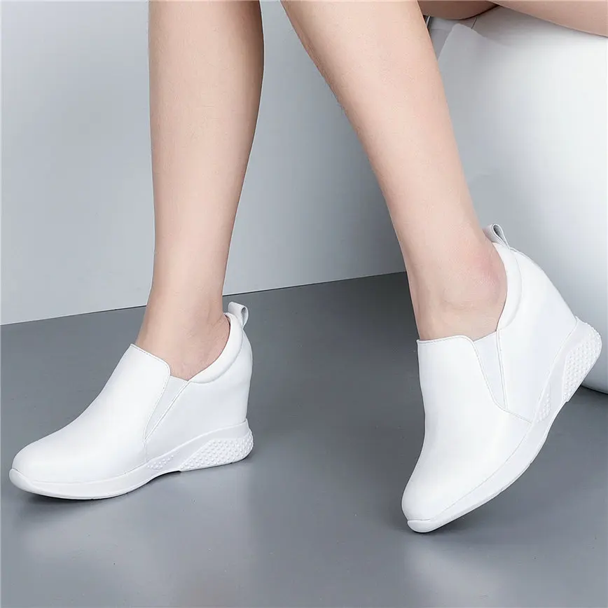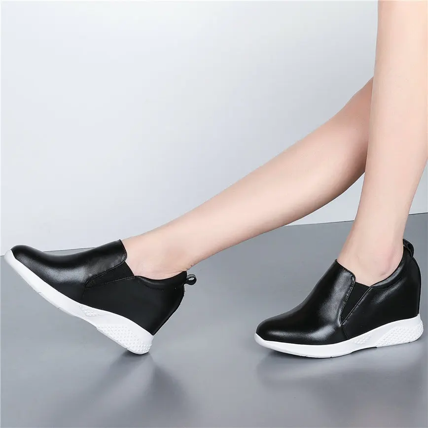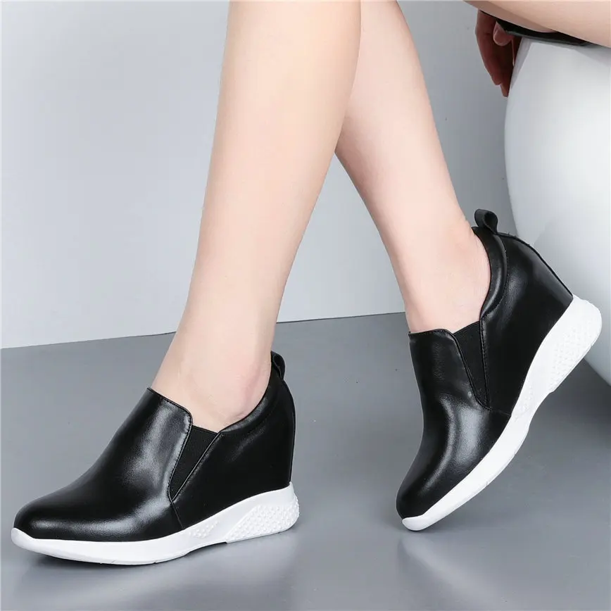 2021 Fashion Sneakers Women Genuine Leather Wedges High Heel Ankle Boots Female Round Toe Comfortable Walking Shoes Casual Обувь - купить