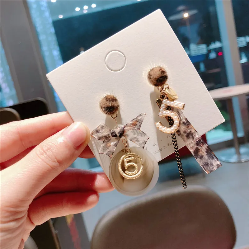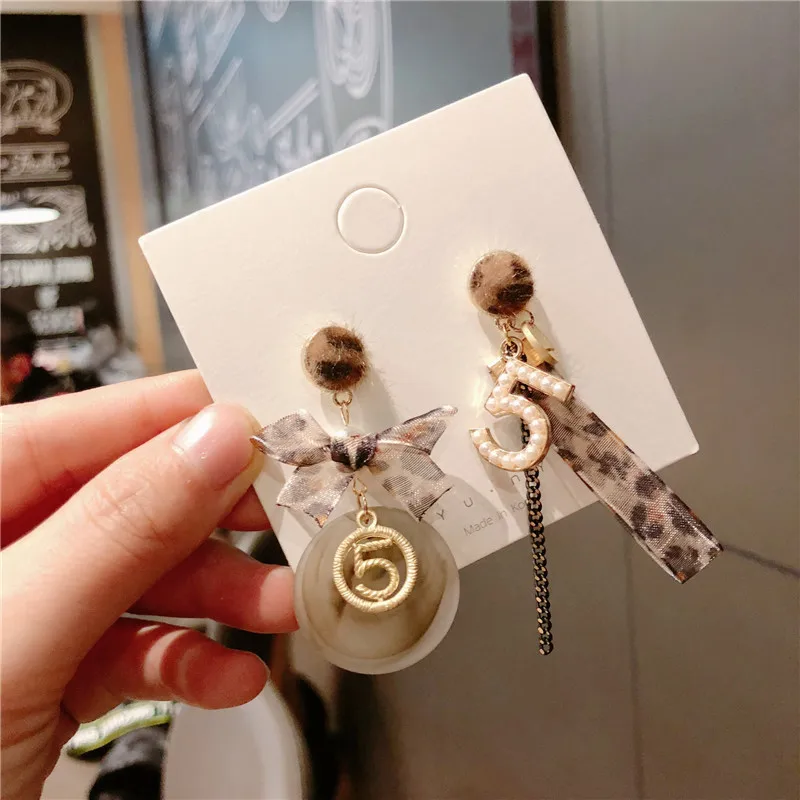 SHIFEEL 2020 Корея Dongdaemun Новая мода Леопардовый принт лента бант жемчуг номер 5 Висячие - купить