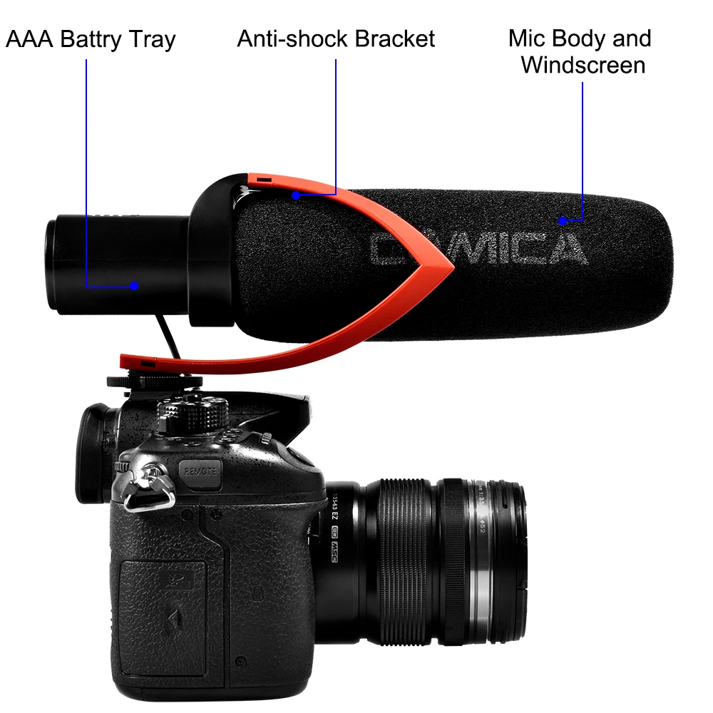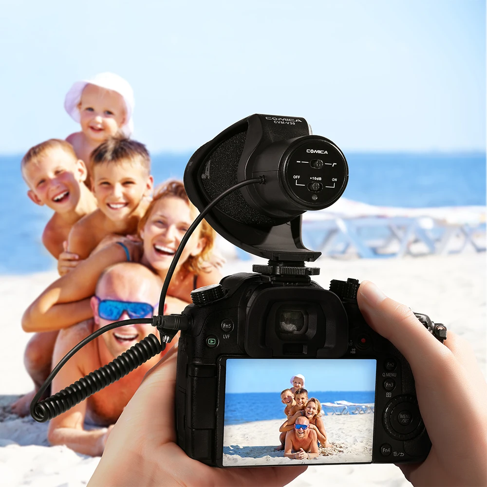 COMICA CVM-V30 PRO направленный конденсаторный видеомикрофон с суперкардиоидным полярным узором, специально разработан для видеосъемки, встречи и интервью для устройств, включая камеру, видеокамера, а также профессиональное оборудование для видеосъемки; Тем временем микрофон спроектирован с регулировкой чувствительности + 10 дБ, функциями фильтра с низким вырезом и супер сильным амортизирующим кронштейном, Который обеспечивает ваше видео более отличным голосом.