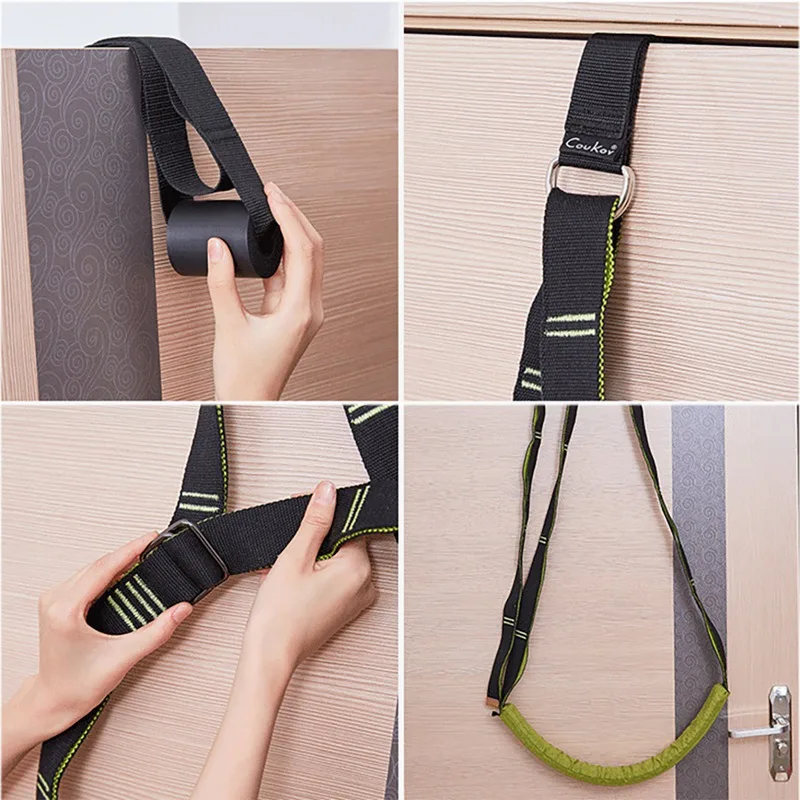 5. Ремешок для занятий йогой и фитнесом идеально подходит для начинающих, пошаговая помощь, а также может использоваться для профессиональной подготовки и обучения. Он прост в использовании и портативен, нет необходимости в штамповке стен, просто поместите подъемное кольцо на верхнюю часть двери.