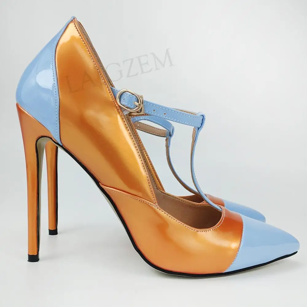 Туфли laigзем женские на высоком каблуке-шпильке с Т-образным ремешком пэчворк - купить