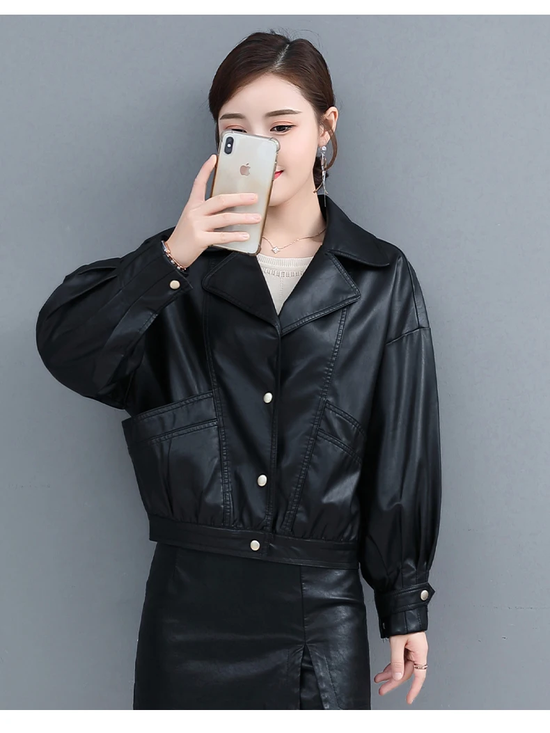 Отзывы о Куртка женская короткая в винтажном стиле из искусственной кожи с отложным