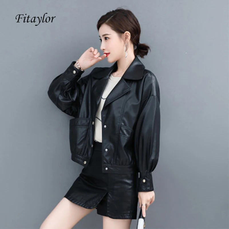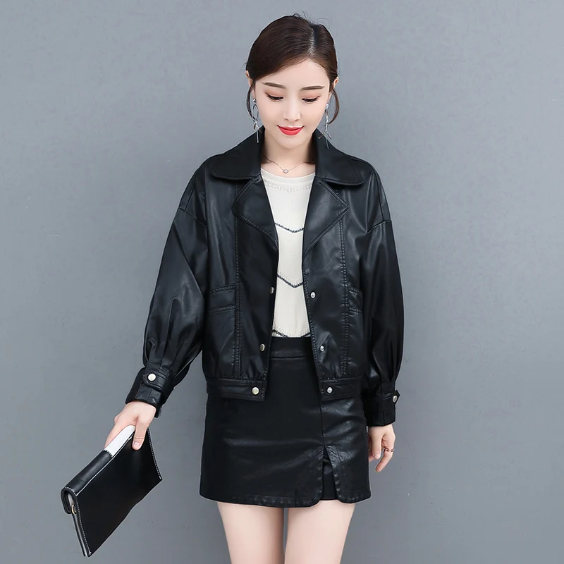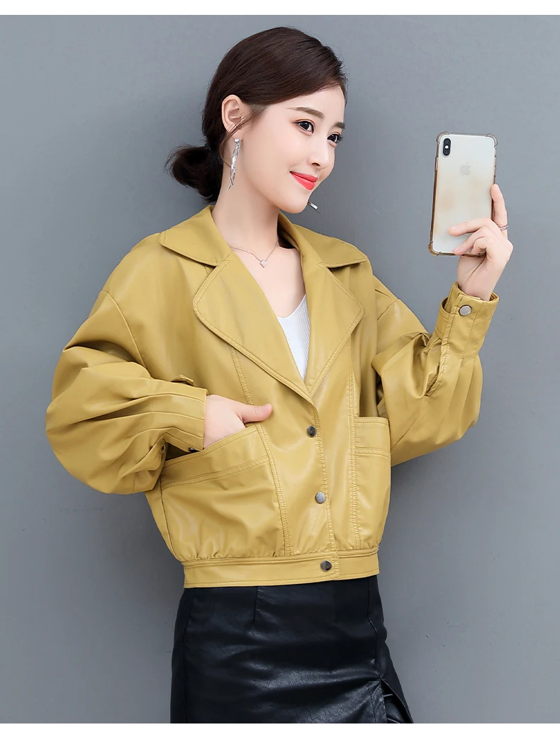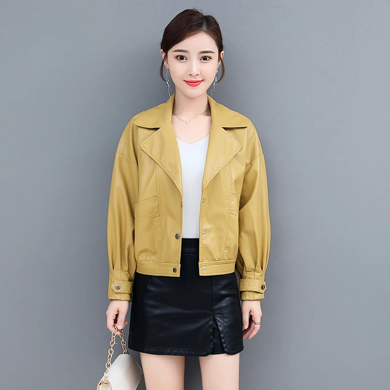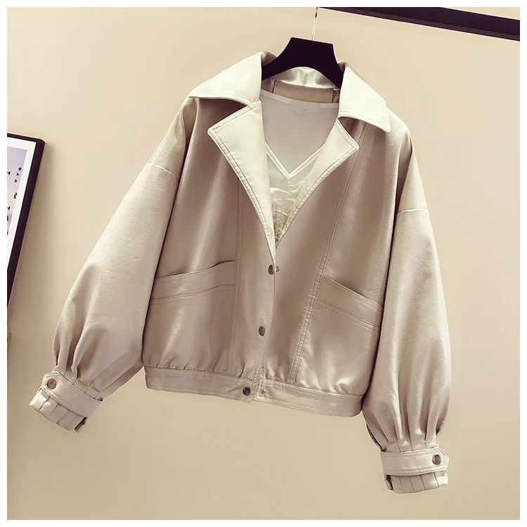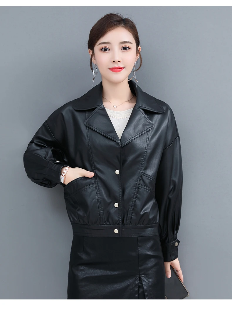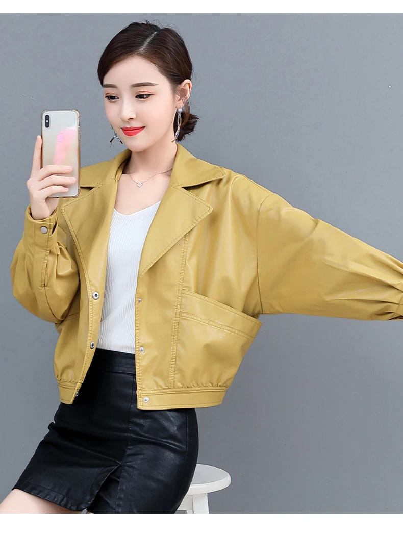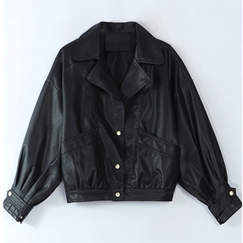 Купить Куртка женская короткая в винтажном стиле из искусственной кожи с отложным
