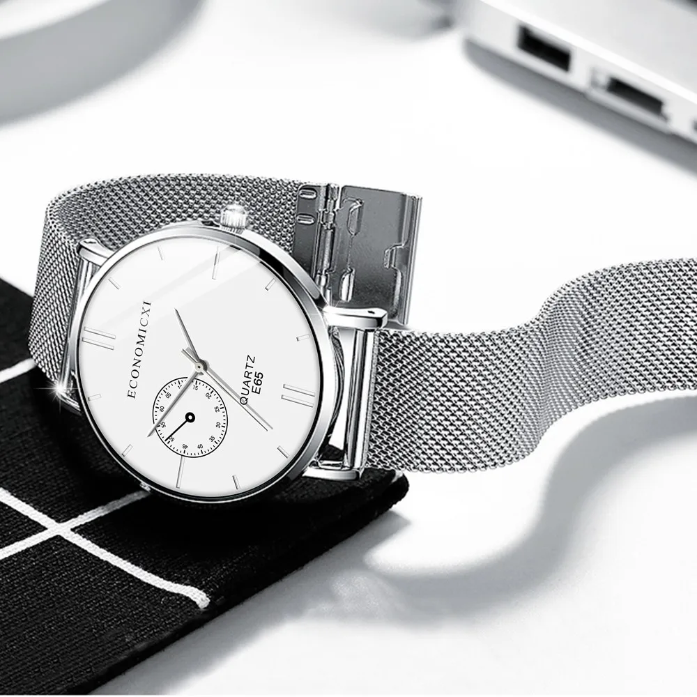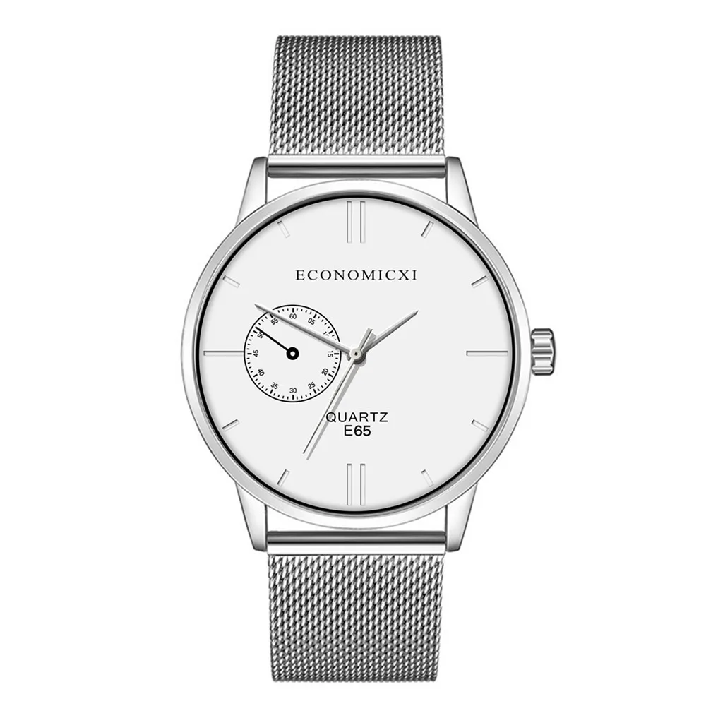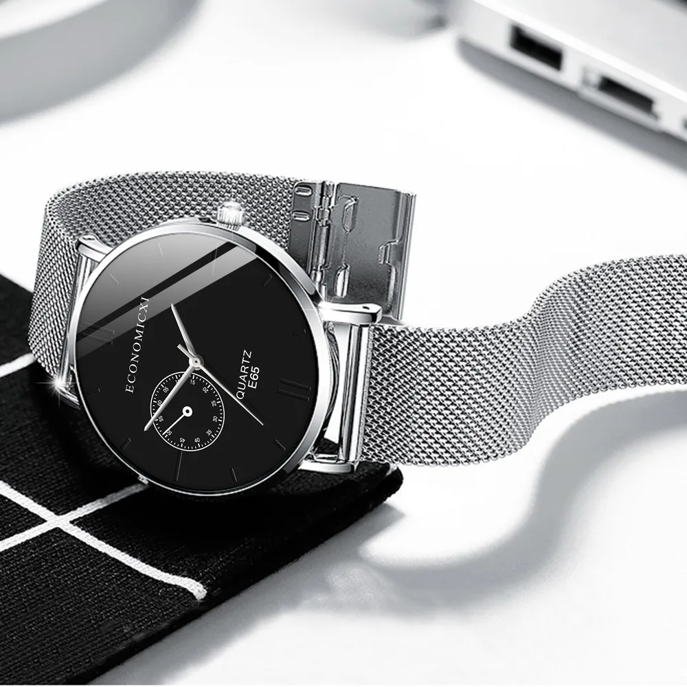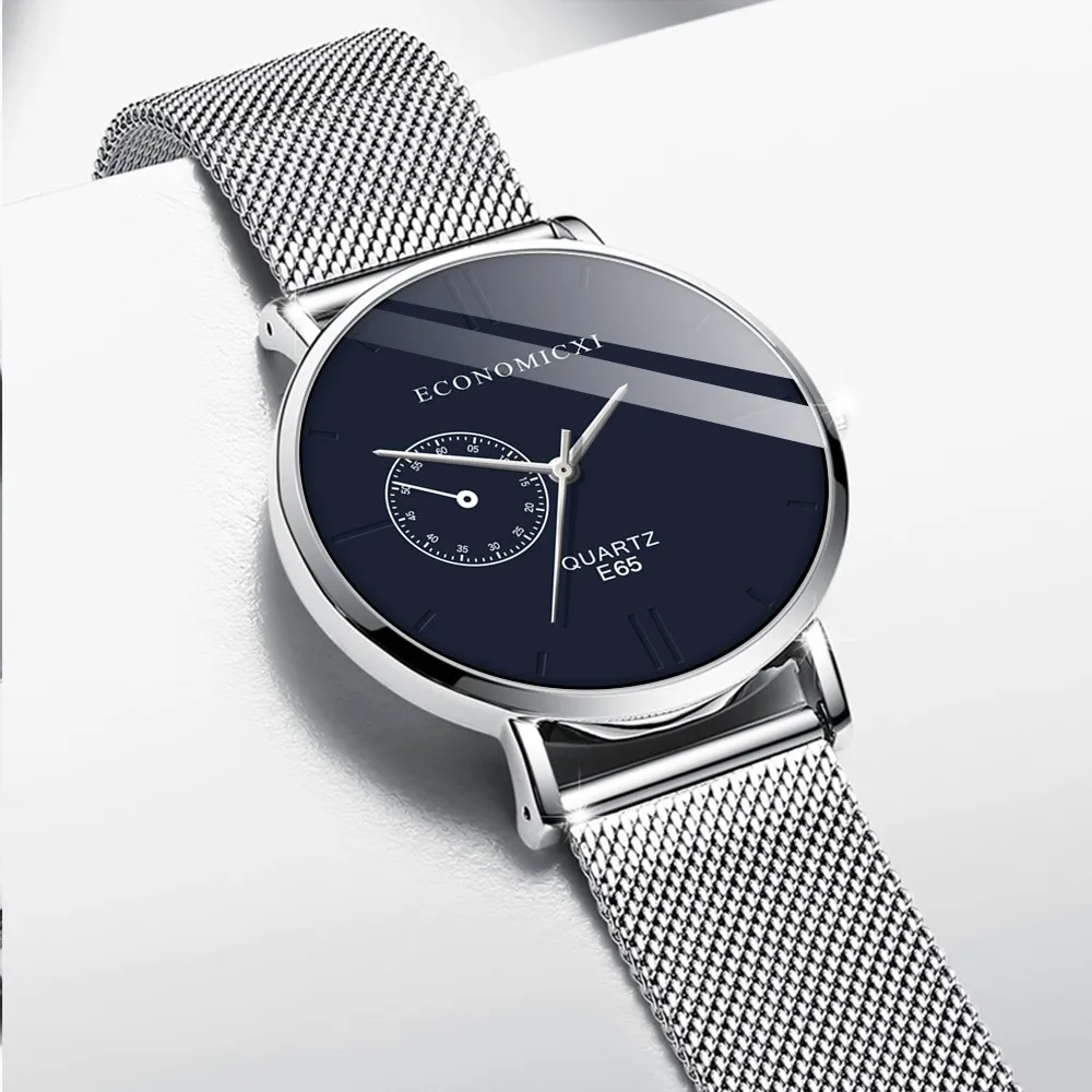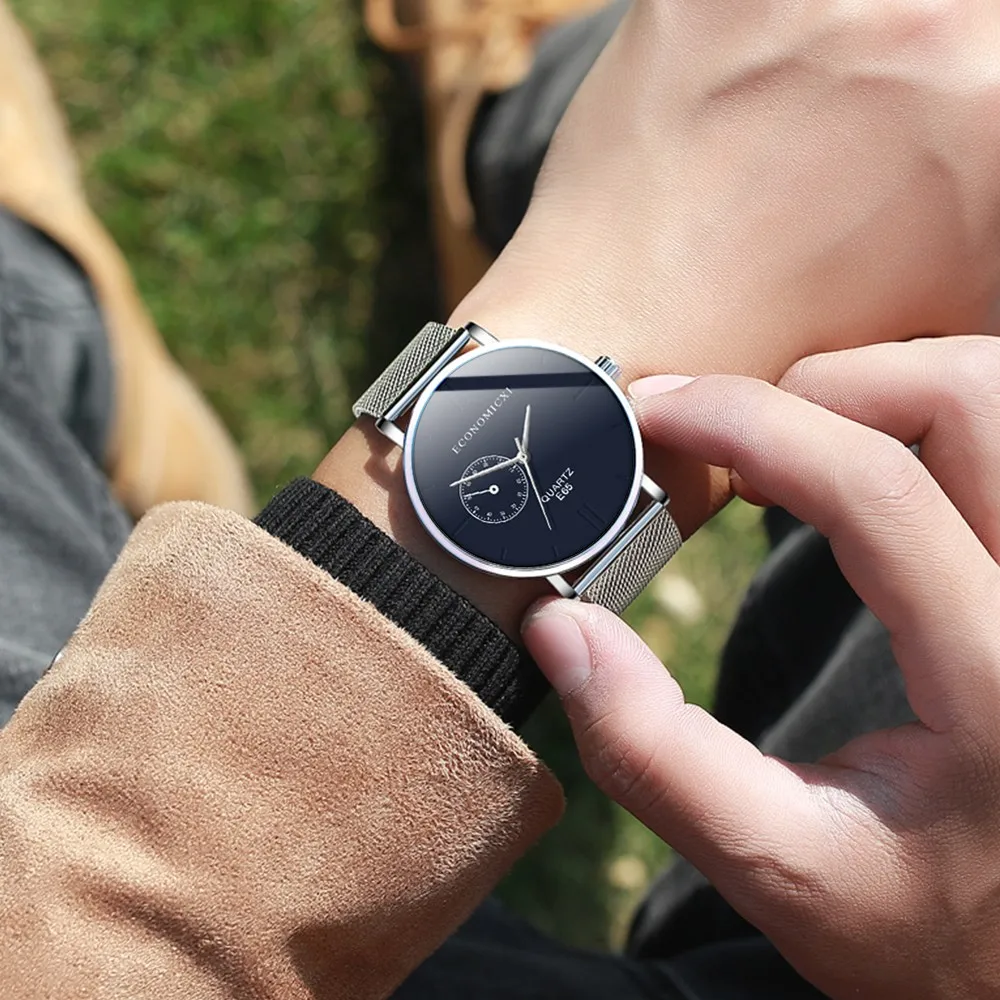 Мужские модные деловые часы, простые мужские кварцевые часы из нержавеющей стали с сетчатым ремешком