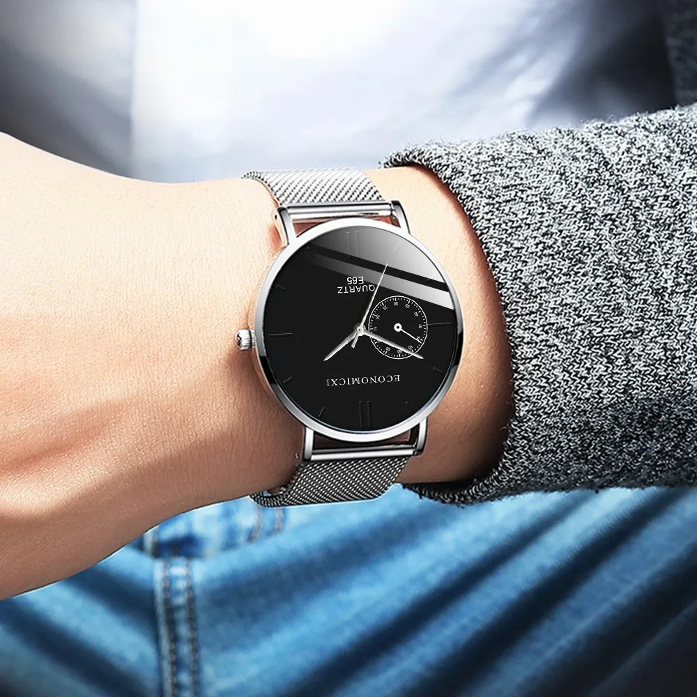 Спортивные часы мужские модные деловые простые из нержавеющей стали с сетчатым - купить