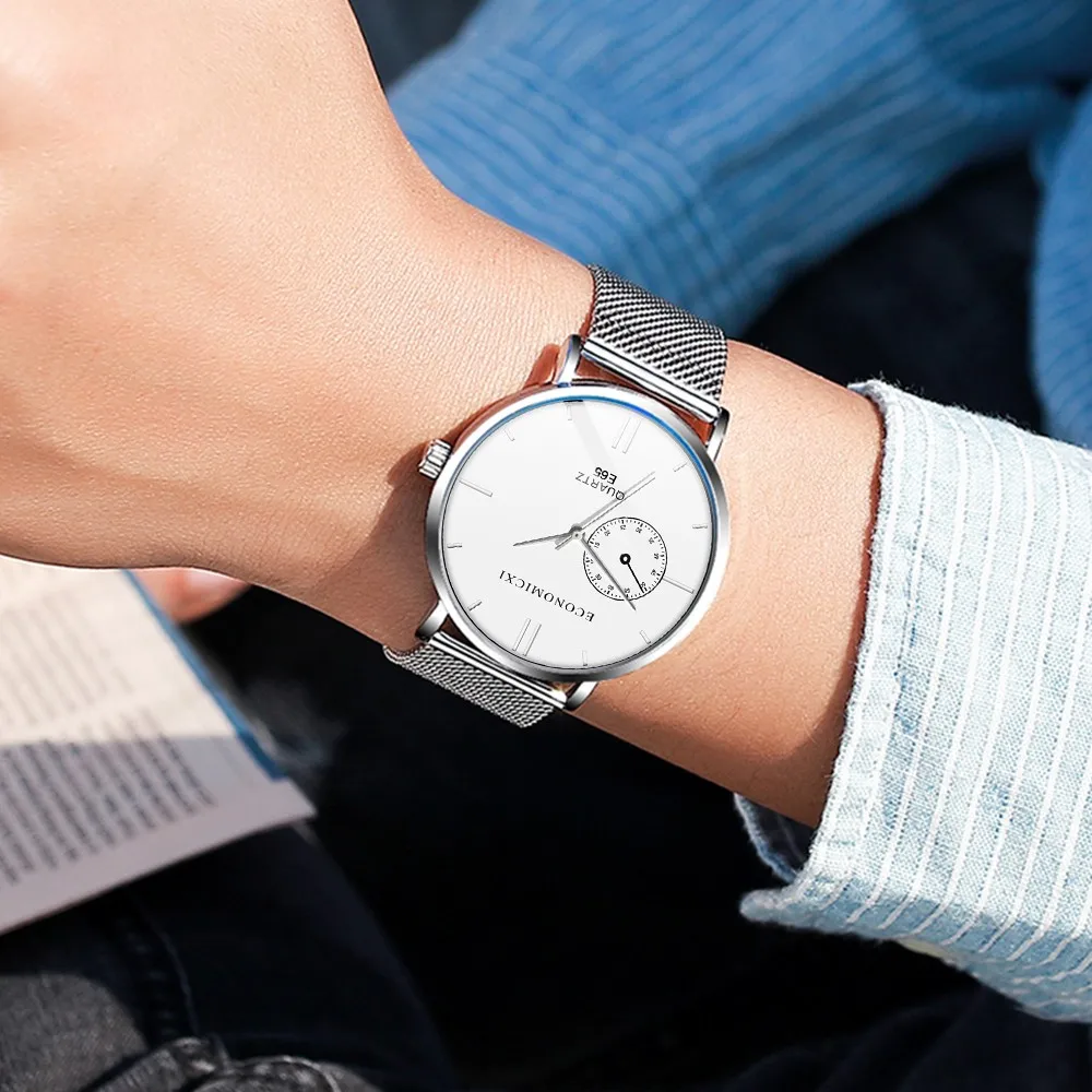 Купить Спортивные часы мужские модные деловые простые из нержавеющей стали с сетчатым