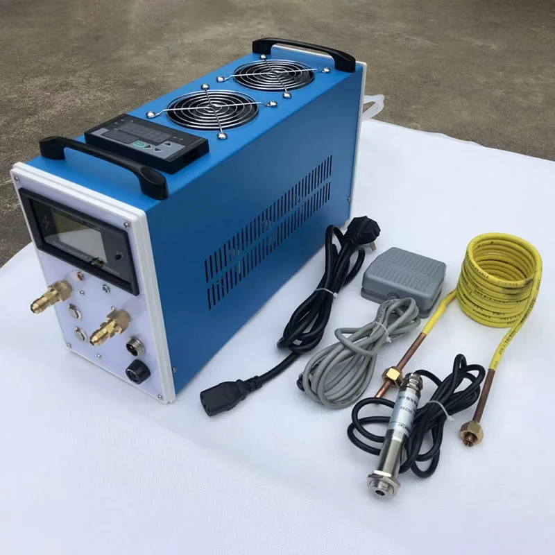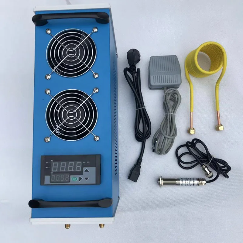 2800W ZVS Induction Heater Metal Smelting Furnace Metal Quenching Equipment Adjustable power+Temperature control 1-1000 ° CThis product is a small power induction heating machine with AC110V-220V power supply. It can be used for heating and quenching of small iron metal materials. It can be used with 70mL graphite crucible to reach a maximum temperature of 1600 degrees Celsius. It can easily melt iron, copper, gold, silver and aluminum. metal.Feature:1. It adopts integrated metal shell design, which is convenient to use and carry, and has good heat dissipation;2. Integrated power supply to avoid complicated wiring;3. The heating ring is wrapped with high temperature insulation material to prevent short circuit during heating, and the heating ring can be removed and replaced to customize a specific heating ring;4. Integrate the internal water cooling circulation system to prevent the heating coil from overheating;5. The top two high-power fans are used for heat dissipation;6. Add a current overload protection switch to trip the protection circuit in case of overload;7. Large LCD screen display system's various operating parameters, including voltage, current, power, motherboard temperature, etc., and can be easily switched in Chinese and English.parameter:1. machine size: 380*140*210 mm;2. Heating ring size: 70*60*73 (inner diameter * outer diameter * high);3.crucible size:45*80mm4. Input voltage: AC110-AC220V 12A;5. DC working voltage: 48V (internal power supply voltage is the apparent voltage);6. Maximum DC operating current: 50A7. Direct heating of metal iron up to 800-900 degrees Celsius8. Use crucible maximum temperature 1700 degrees CelsiusPackage:machine 1pcs(0-2800W Adjustable Power+ Temperature control 1-1000 ° C)Heating copper tube 1pcscrucible 1pcsFoot switch 1pcs Infrared temperature sensor 1pcsPrecautions:1. The boot sequence should follow the first turn on the main power switch. After waiting for a few seconds, you can see that the fan and the pump are working normally. When the voltage is displayed as 48V, you can turn on the inductive heating switch on the back. Do not operate incorrectly, otherwise it will be directly Burn out the motherboard and no protection. Turn off the heating switch and then turn off the power switch when shutting down. If the shutdown is not used for a period of time, the total power supply should be turned off after the heating switch is turned off for one minute, so that the cooling system will cool the system and increase the service life;2. Work must be water-cooled and air-cooled at the same time. If any one of them does not work, immediately disconnect the power supply and contact the manufacturer for a solution;3. If the conditional water cooling can be directly discharged by using cold water and hot water, the circulation method is not adopted, so that the heat dissipation effect is better;4. Long-term use of antimony should be prepared, graphite high-temperature heating will react with oxygen to form carbon dioxide and gradually consume it;5. Always pay attention to the changes of various parameters of the display, especially the voltage and current and the temperature of the motherboard. Whenever an abnormality is found, the power must be disconnected immediately.6. When using at high power, it is normal for the operating noise of the heat dissipation system to be relatively large.