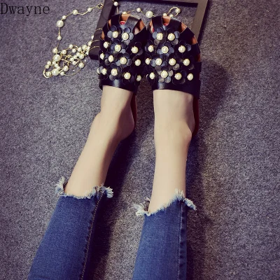 Женские ажурные тапочки baotou новые корейские с цветочным принтом жемчугом и - купить