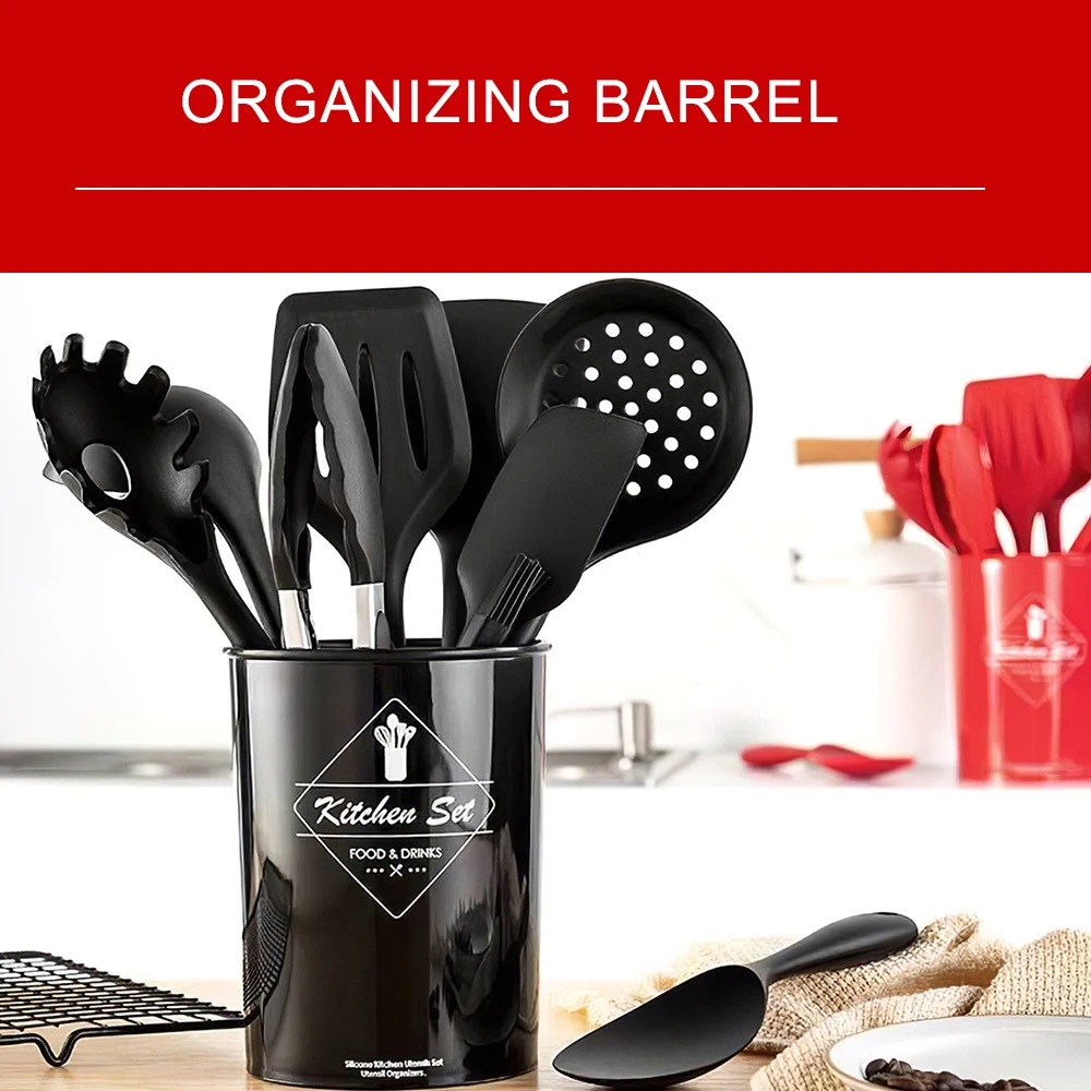Крюк отверстие для повесить на стену кухни: есть отверстие в конце ручки для вас, чтобы повесить посуда на стену кухни, если вам нравится. Также в комплект входит элегантная бочка,Удобно для вас, чтобы организовать весь набор.