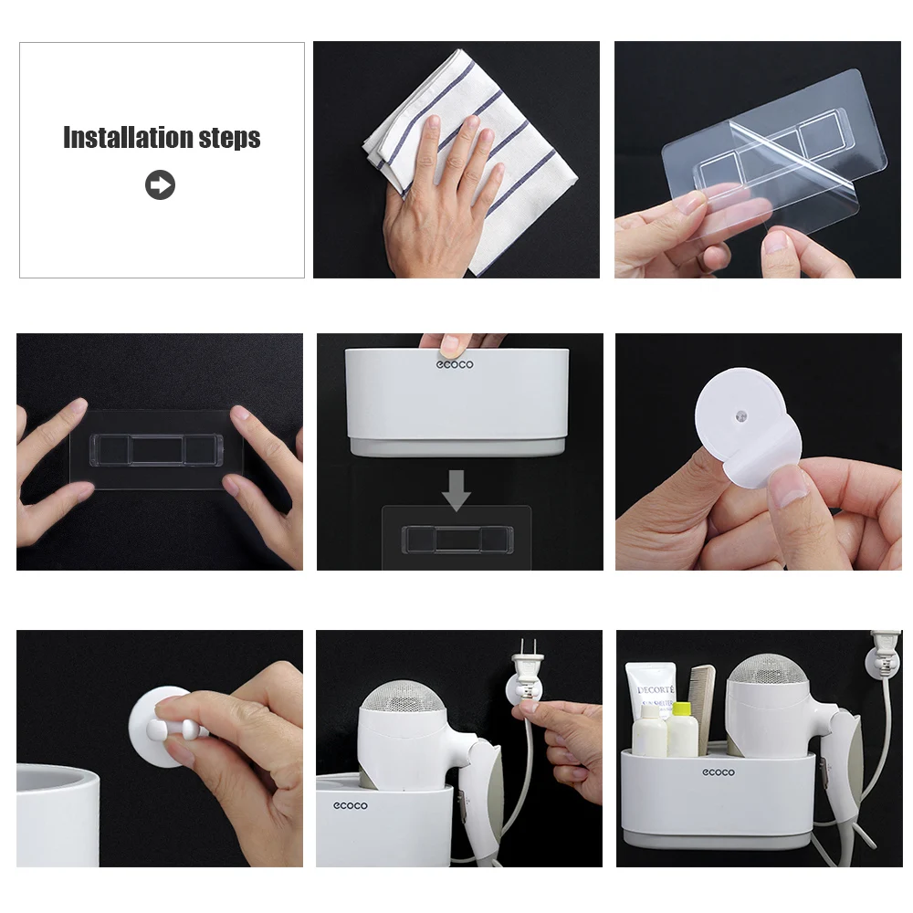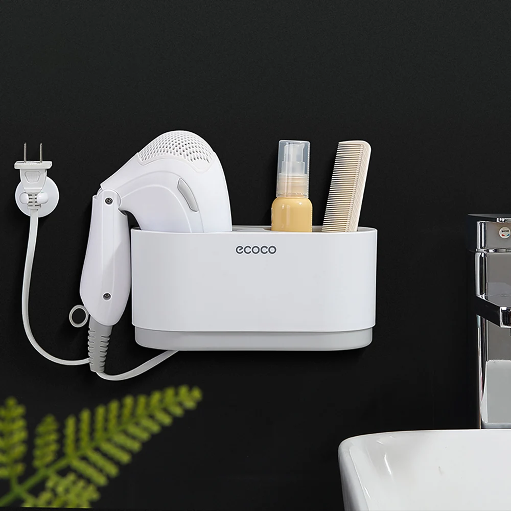 Настенный фен для волос ecoco, держатель для волос, подвесная стойка для ванной комнаты, органайзер с 1 кабельным крючком для дома и отеля