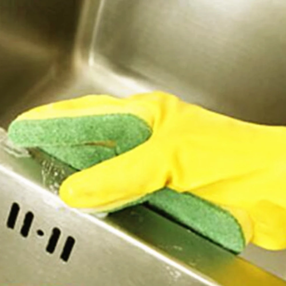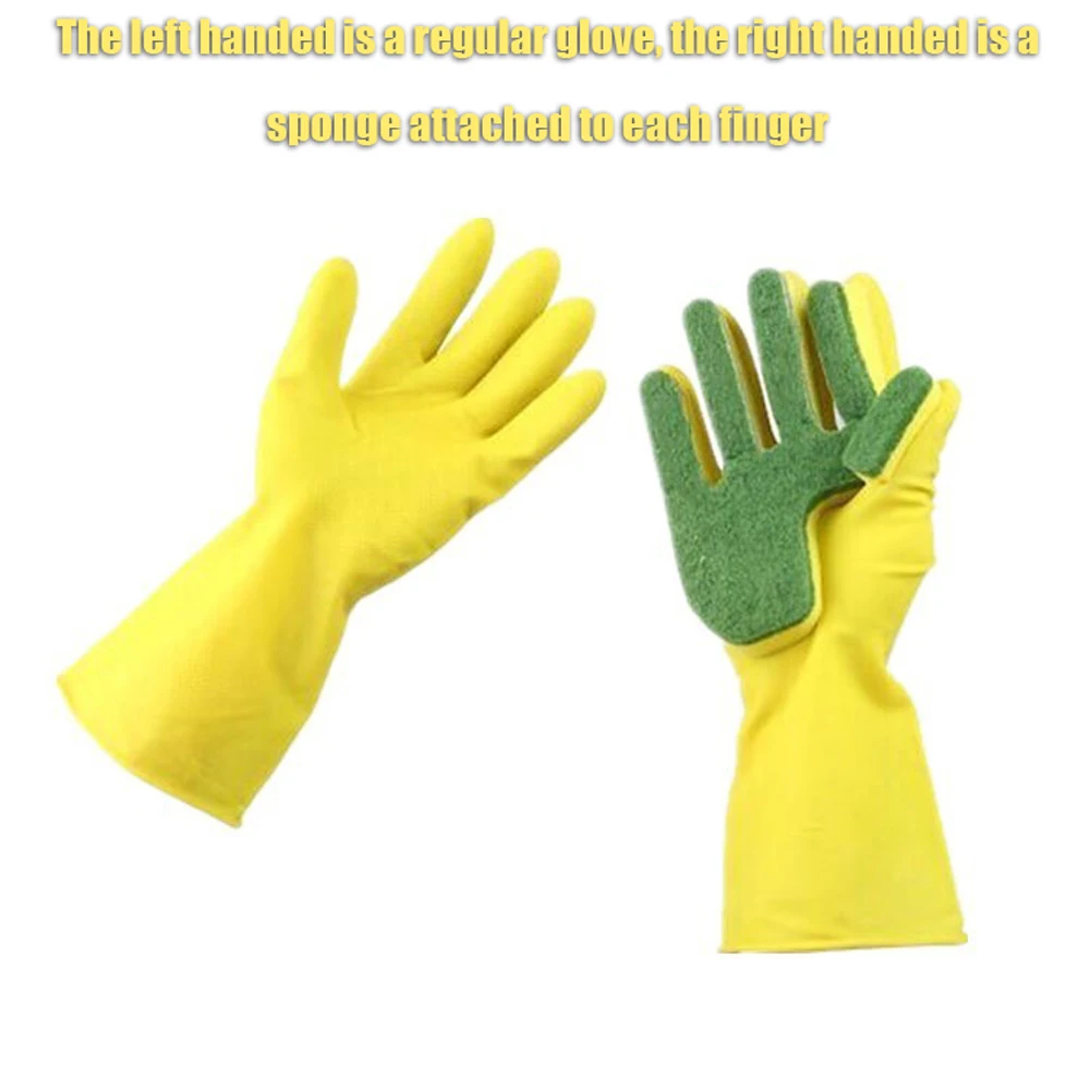 Домашние моющие перчатки для мытья кухонной посуды с пальцами из губки резиновые хозяйственные перчатки для уборки посуды