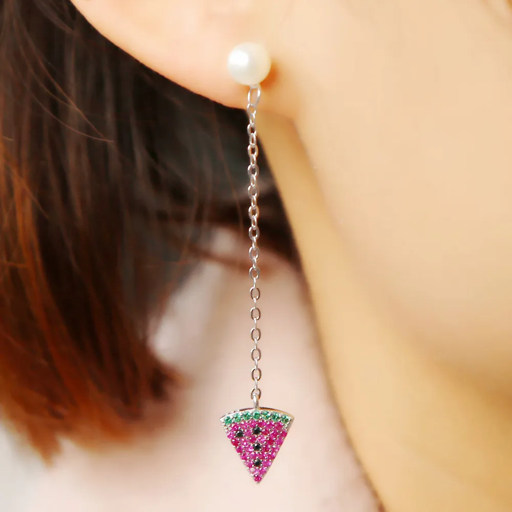 Купить 925 стерлингового серебра 2021 новые летние жемчуг серьги в виде арбуза Шарм
