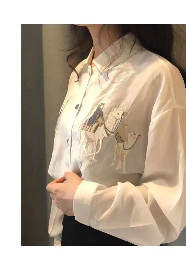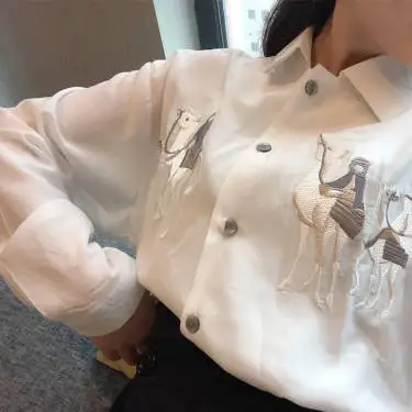 Блузка женская с длинным рукавом белая вышивкой в Корейском стиле свободная 2020 - купить