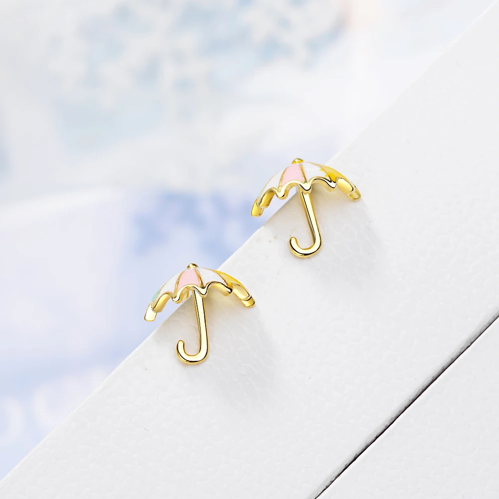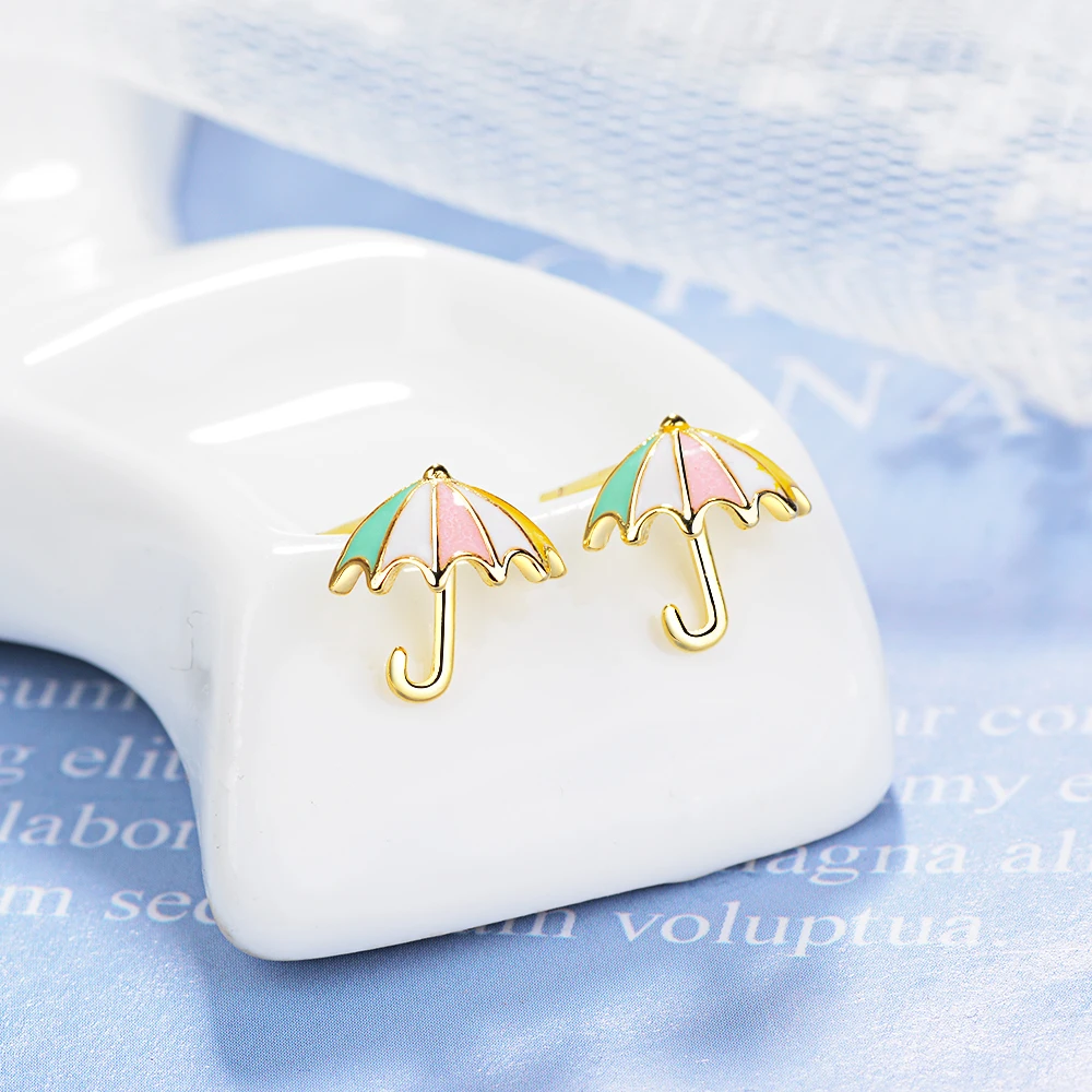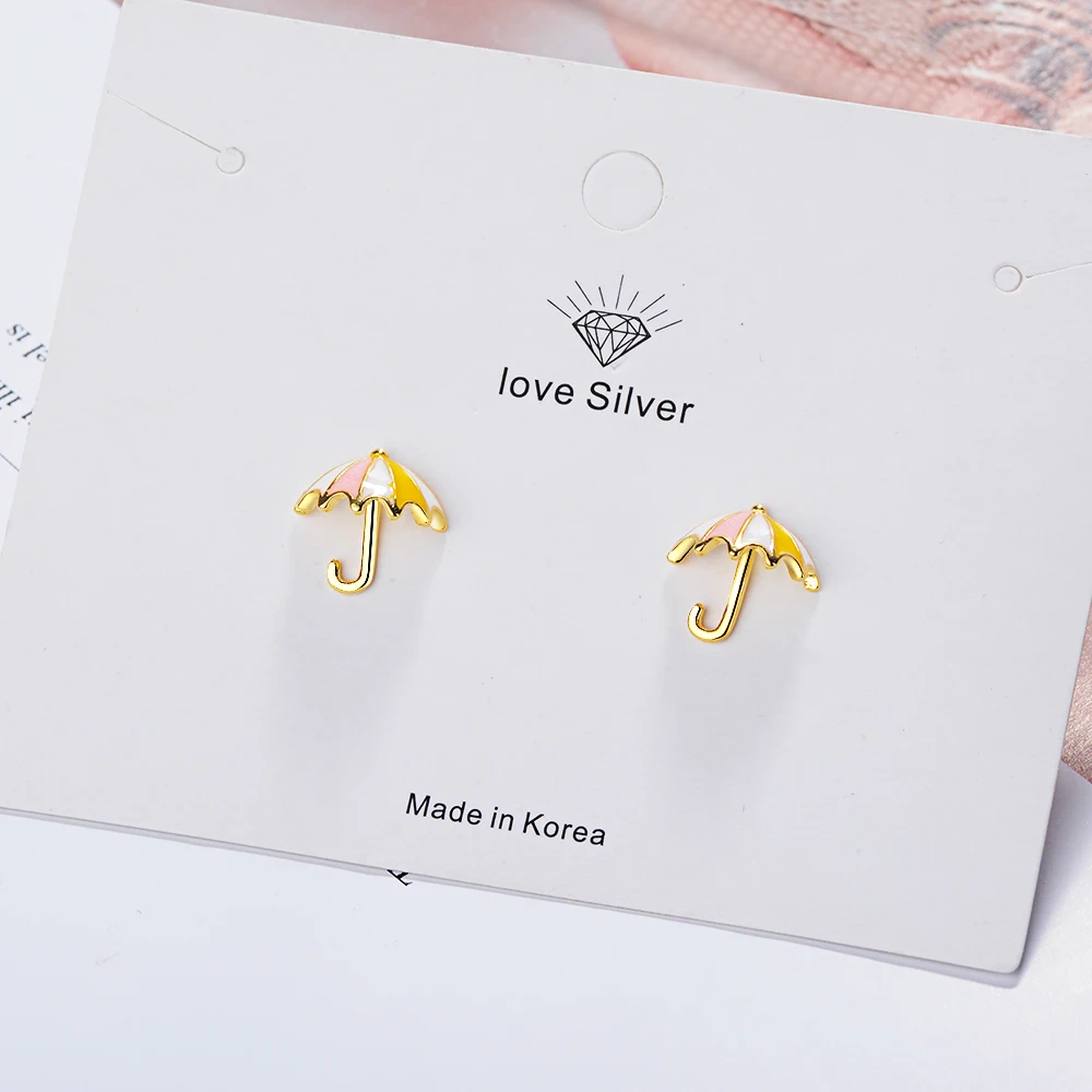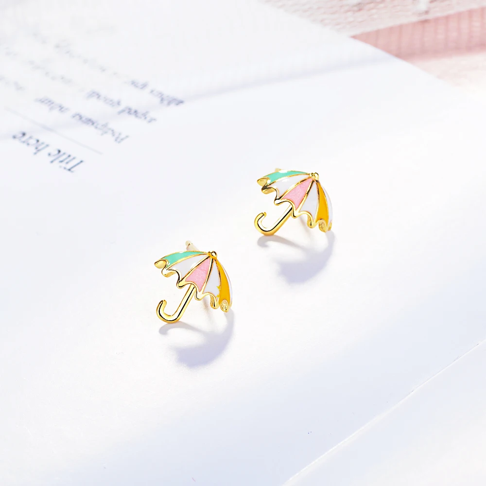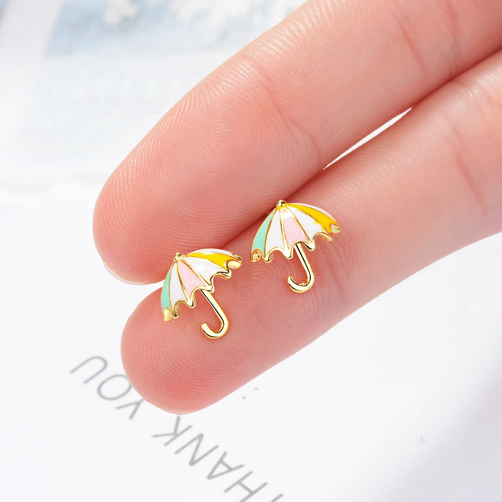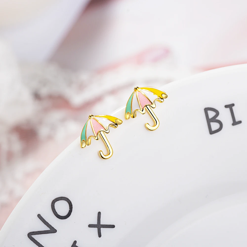 FLSCDYED Gold Color Umbrella Delicate Colorful Small Earring Fresh Temperament Cute Children Baby Stud Earrings Creative Gift Украшения и - купить