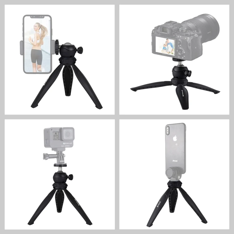 Купить PULUZ 20см карманный пластиковый штатив с 360-градусной шаровой головкой для смартфонов, GoPro и DSLR камер.