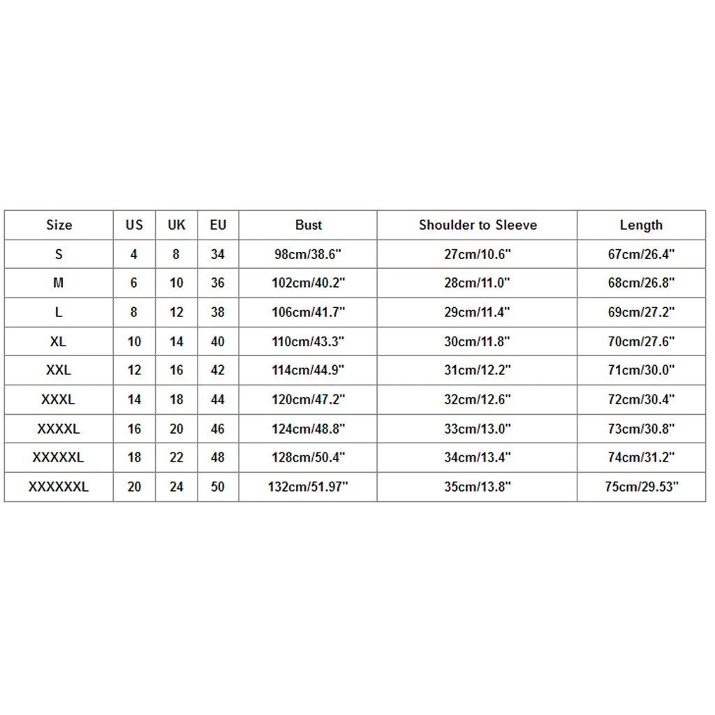 | Размер | США | Великобритания | ЕС | Бюст | От плеча до рукава | Длина |