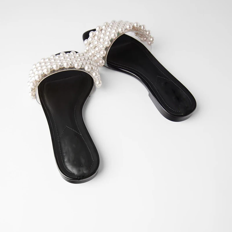 Летние женские шлепанцы с жемчугом повседневные пляжные сандалии на плоской - купить
