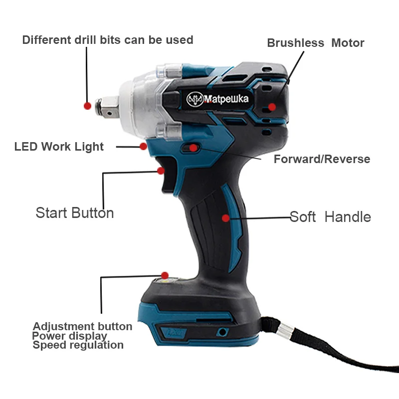 Отзывы о Электрический бесщеточный ударный гайковерт 18 в перезаряжаемый торцевой ключ 1/2