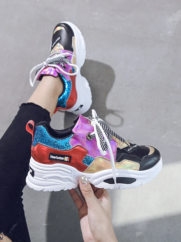2020 женская обувь на платформе; Массивные кроссовки; Женская повседневная обувь на плоской подошве; Дизайнерская модная женская обувь для папы; Женская обувь; 42 Верх: кожа Подошва: резина Размер: 35-42