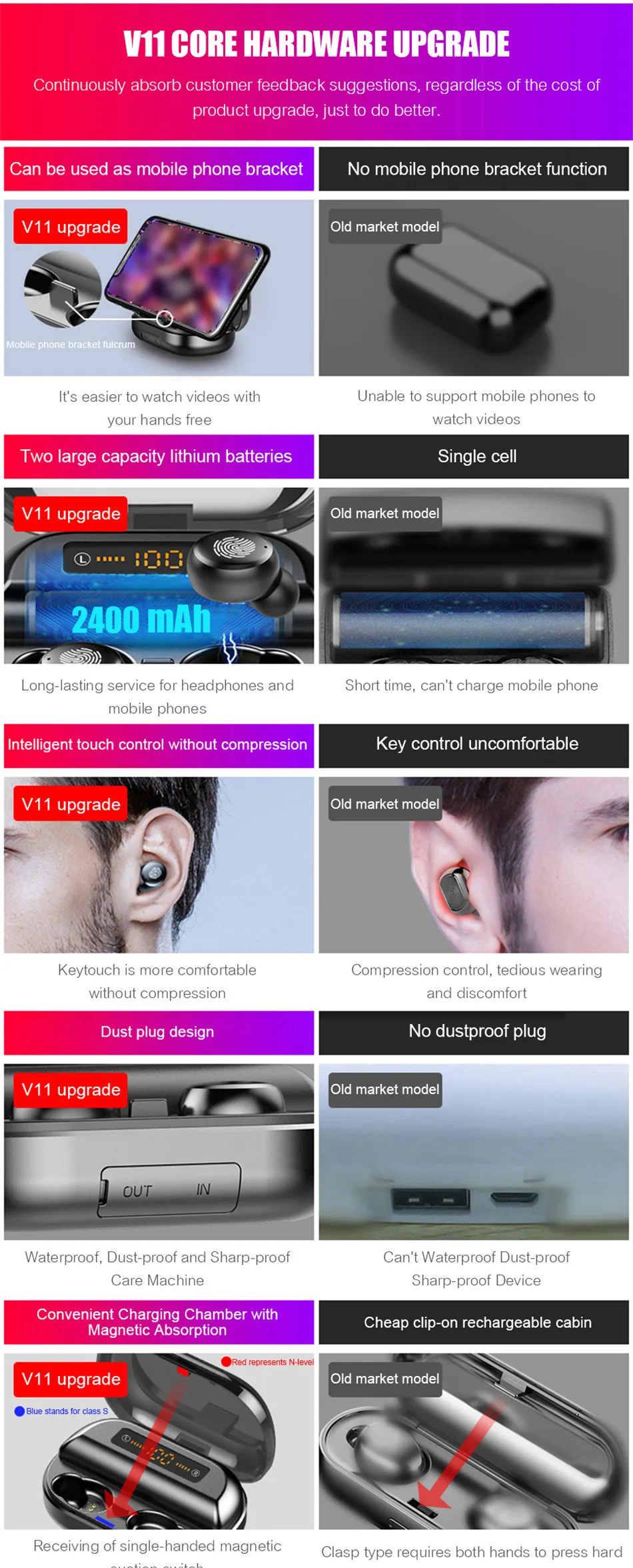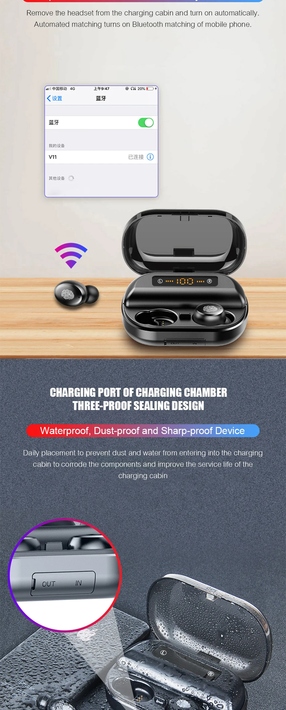 V11 TWS беспроводная bluetooth гарнитура 5.0LED цифровой дисплей интеллектуальный - купить
