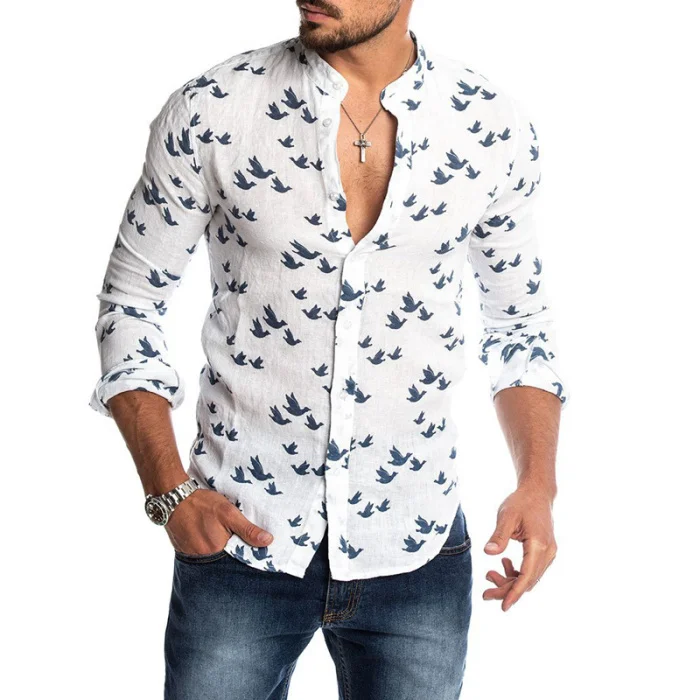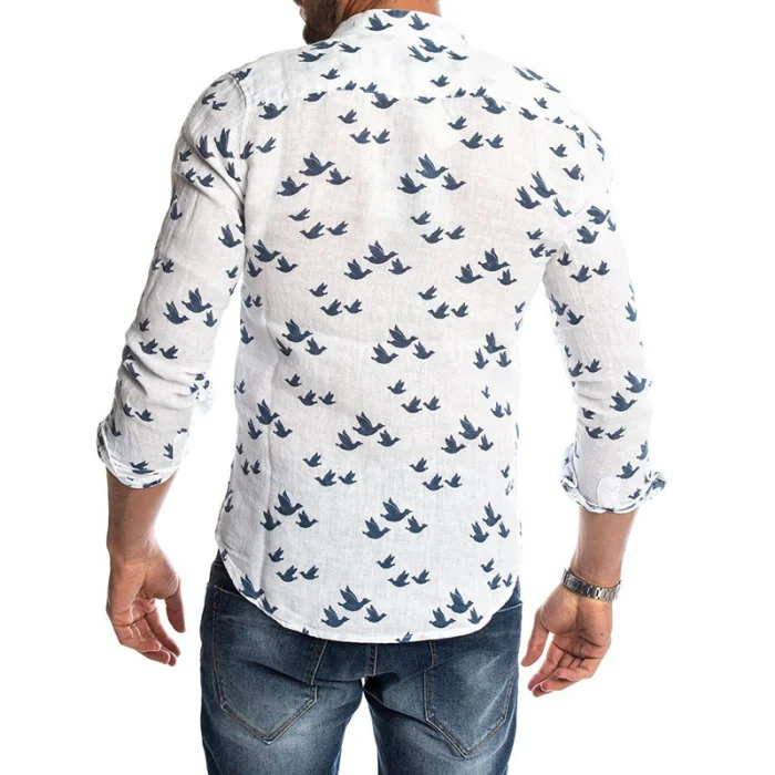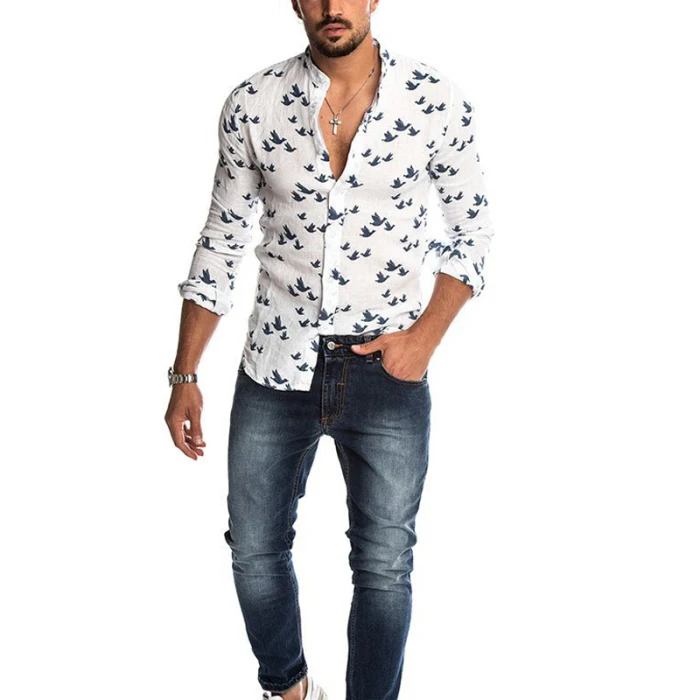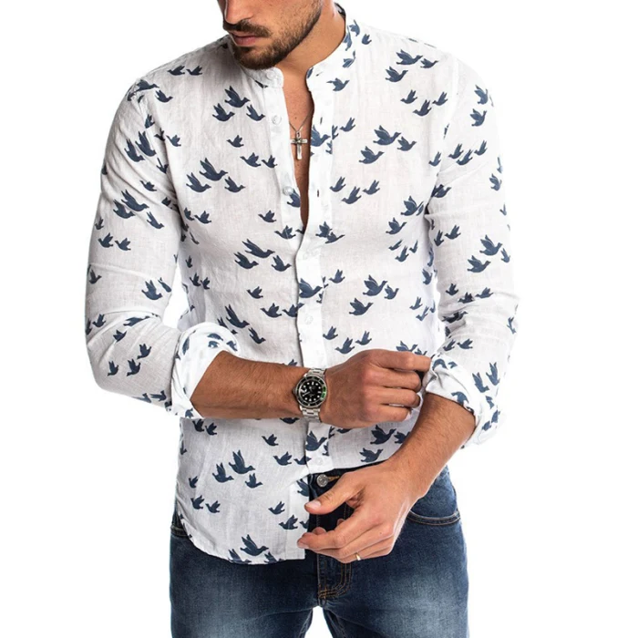 2. Модные рубашки для мужчин: Легкий крой теплой погоды-белая льняная рубашка. Молодой, энергичный и позволит вам чувствовать себя спокойным, сохранять уверенность в себе и чувствовать себя счастливым в вашей работе и досуге, надежная долговечность